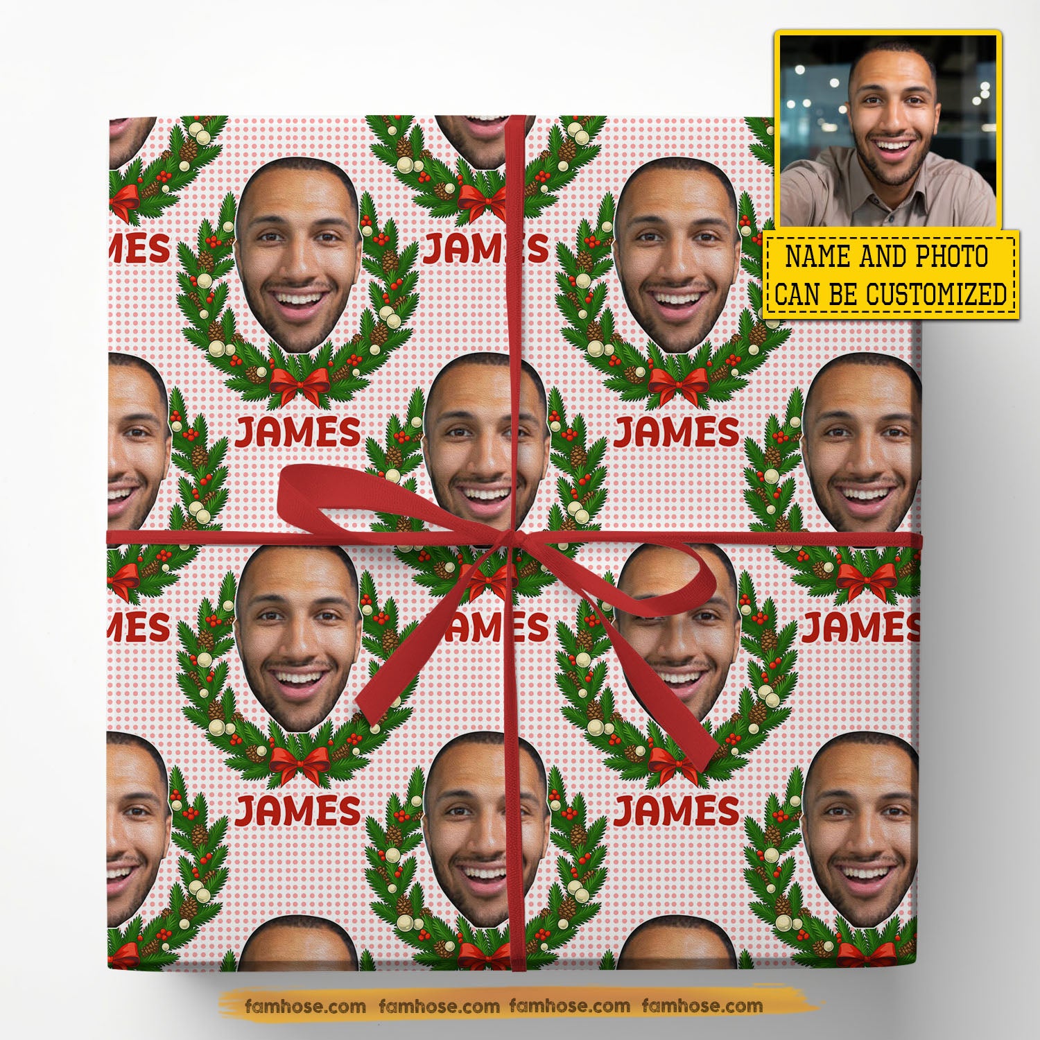 Personalized Christmas Wrapping Paper, Custom Yourself Between Wreath In White Background With Red Dots Wrapping Paper Rolls Xmas Gift