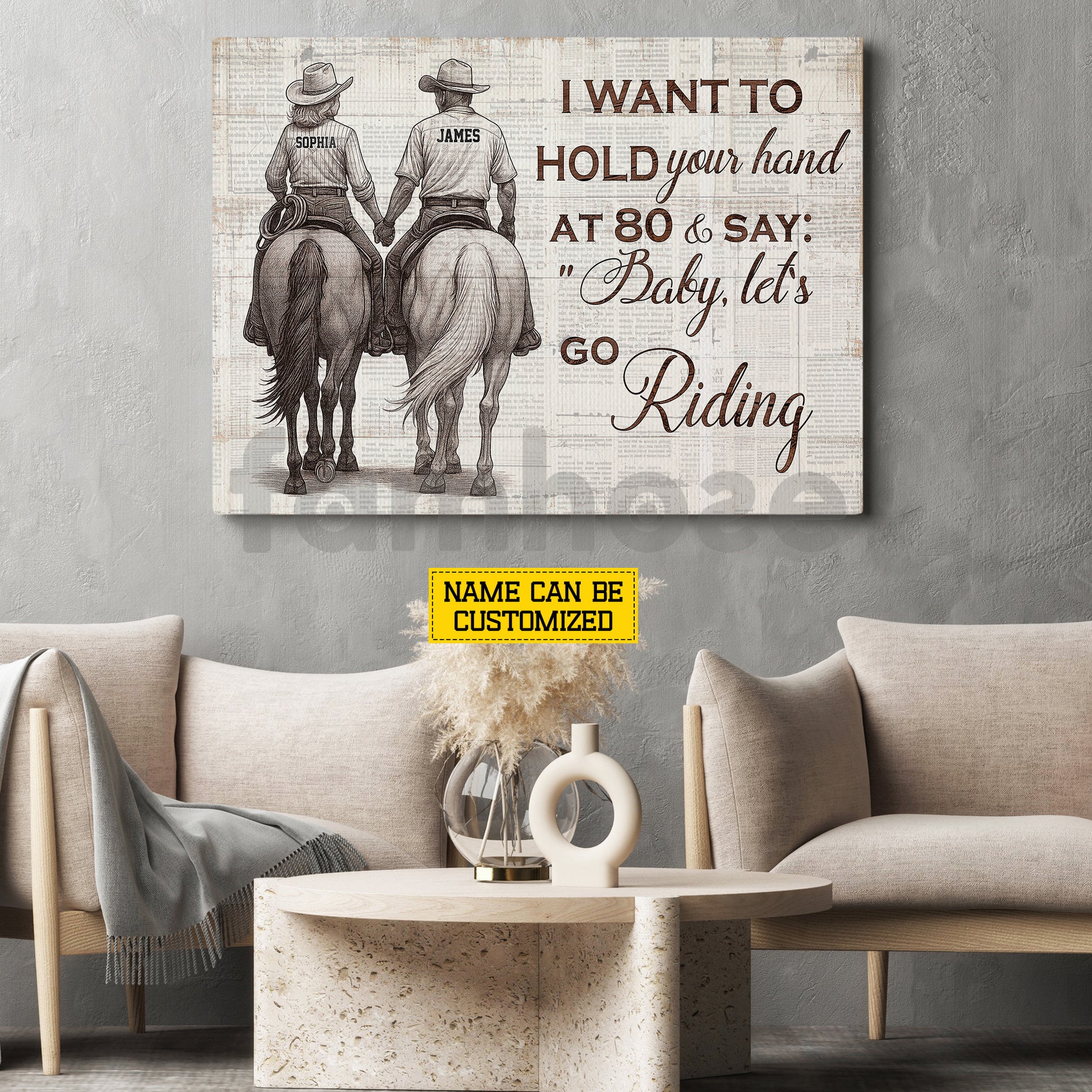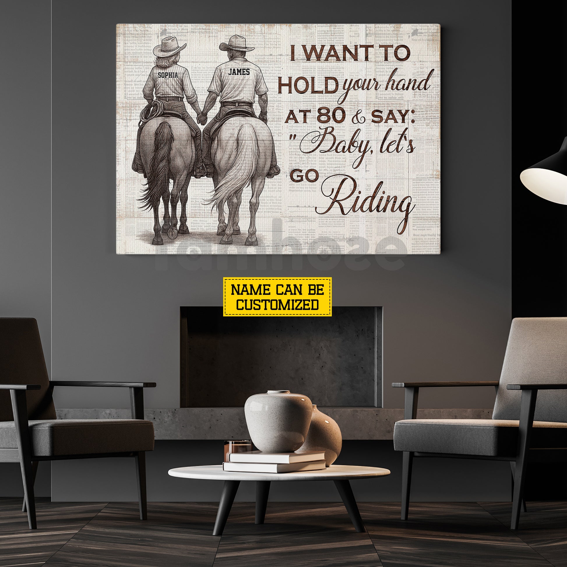 Personalized Couple Cowboy Cowgirl Riding Horse Canvas Painting, Baby Let's Go Riding Wall Art Decor, Poster Gift For Horse Riding Lover