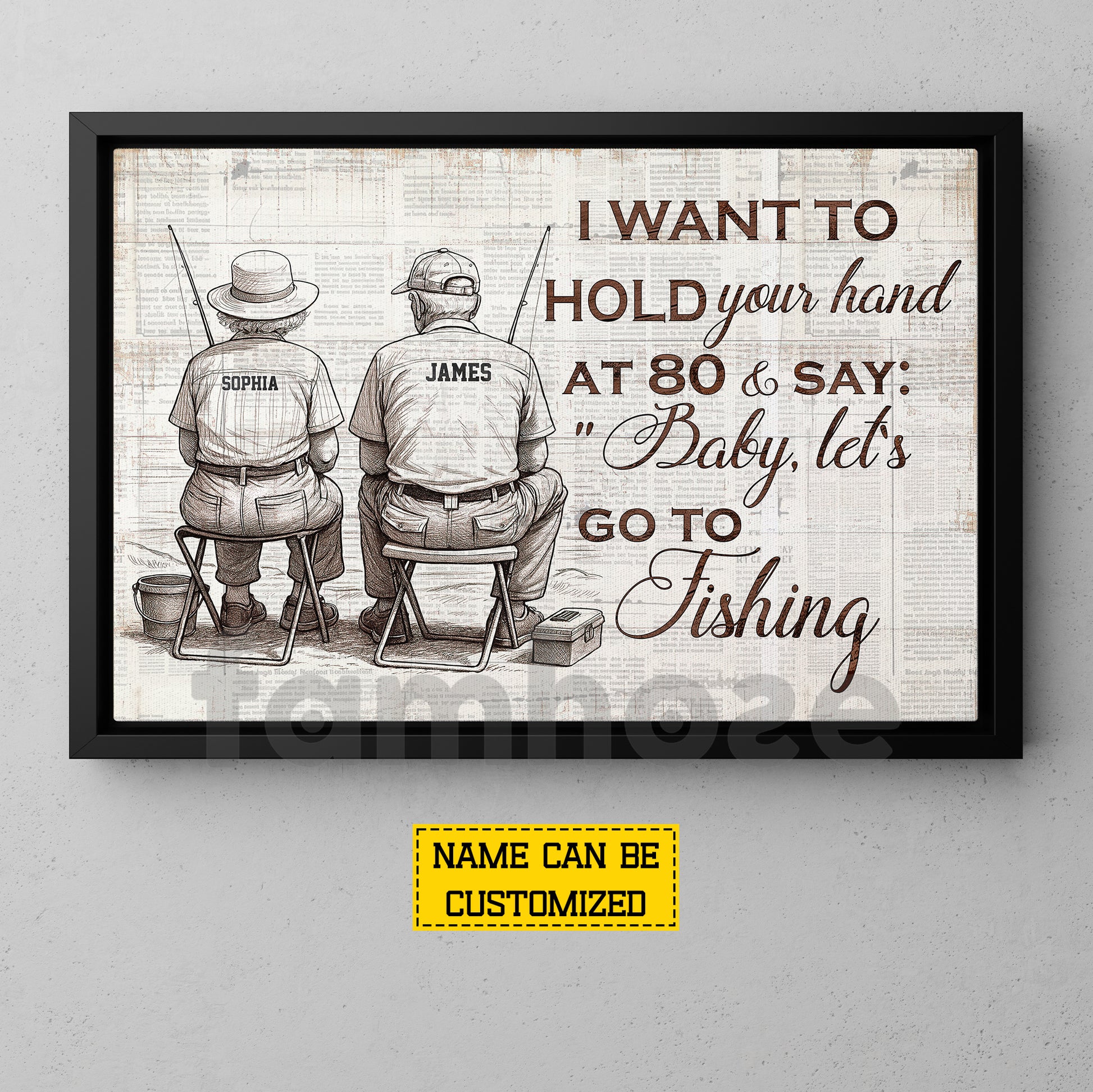 Personalized Couple Fishing Canvas Painting, Baby Let's Go To Fishing Wall Art Decor, Poster Gift For Fishing Lover