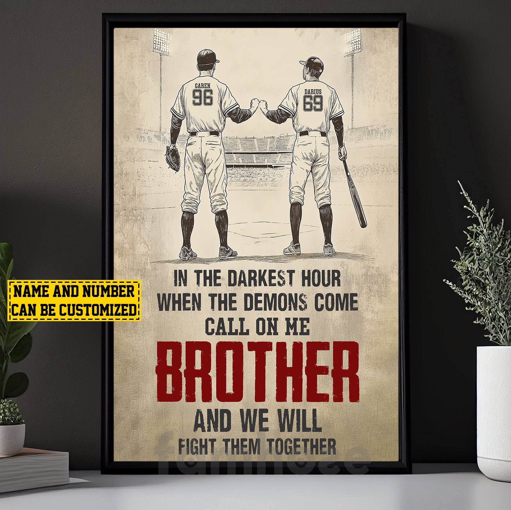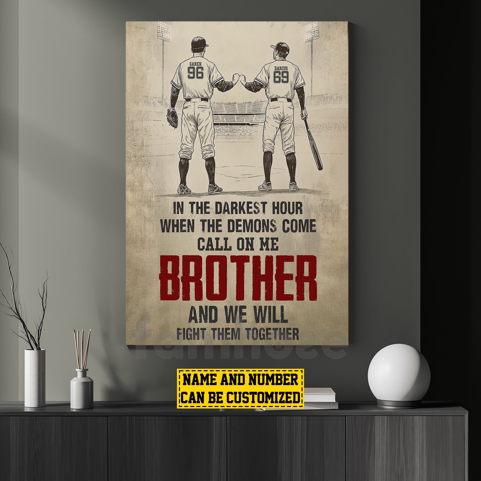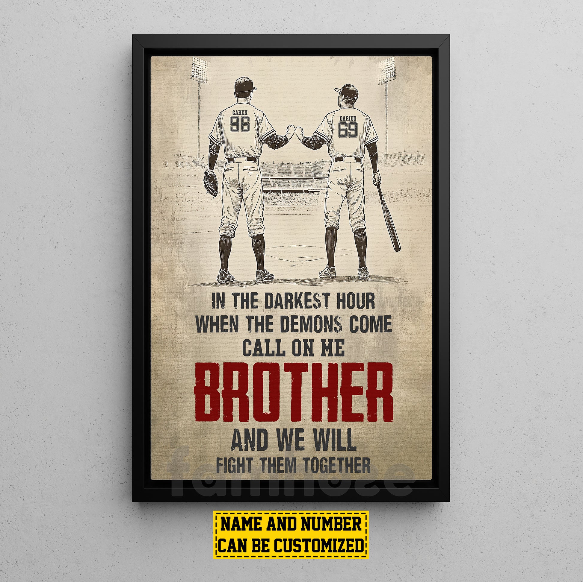 Personalized Couple Friend Baseball Boy Canvas Painting, In The Darkest Hour Sports Wall Art Decor, Poster Gift For Baseball Lovers