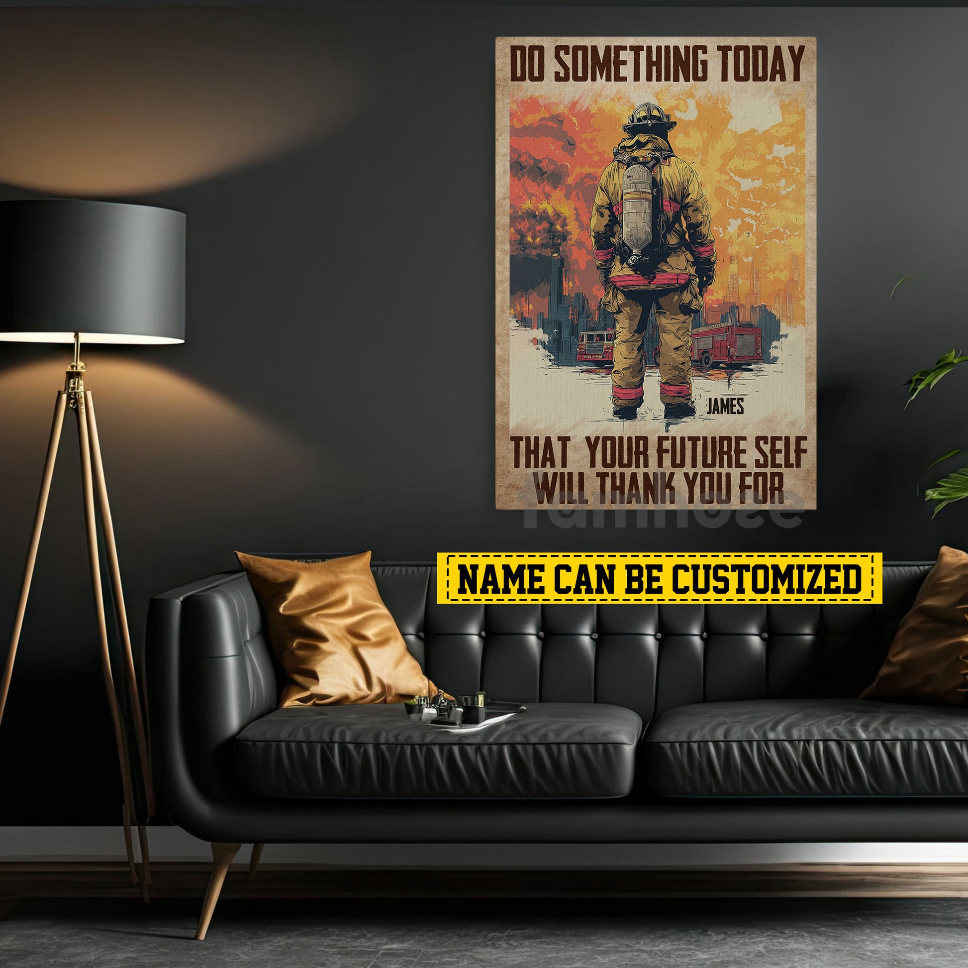 Personalized Firefighter Man Canvas Painting, Do Something Today That Your Future Self Will Thank You For Wall Art Decor, Poster Gift For Firefighter Lovers