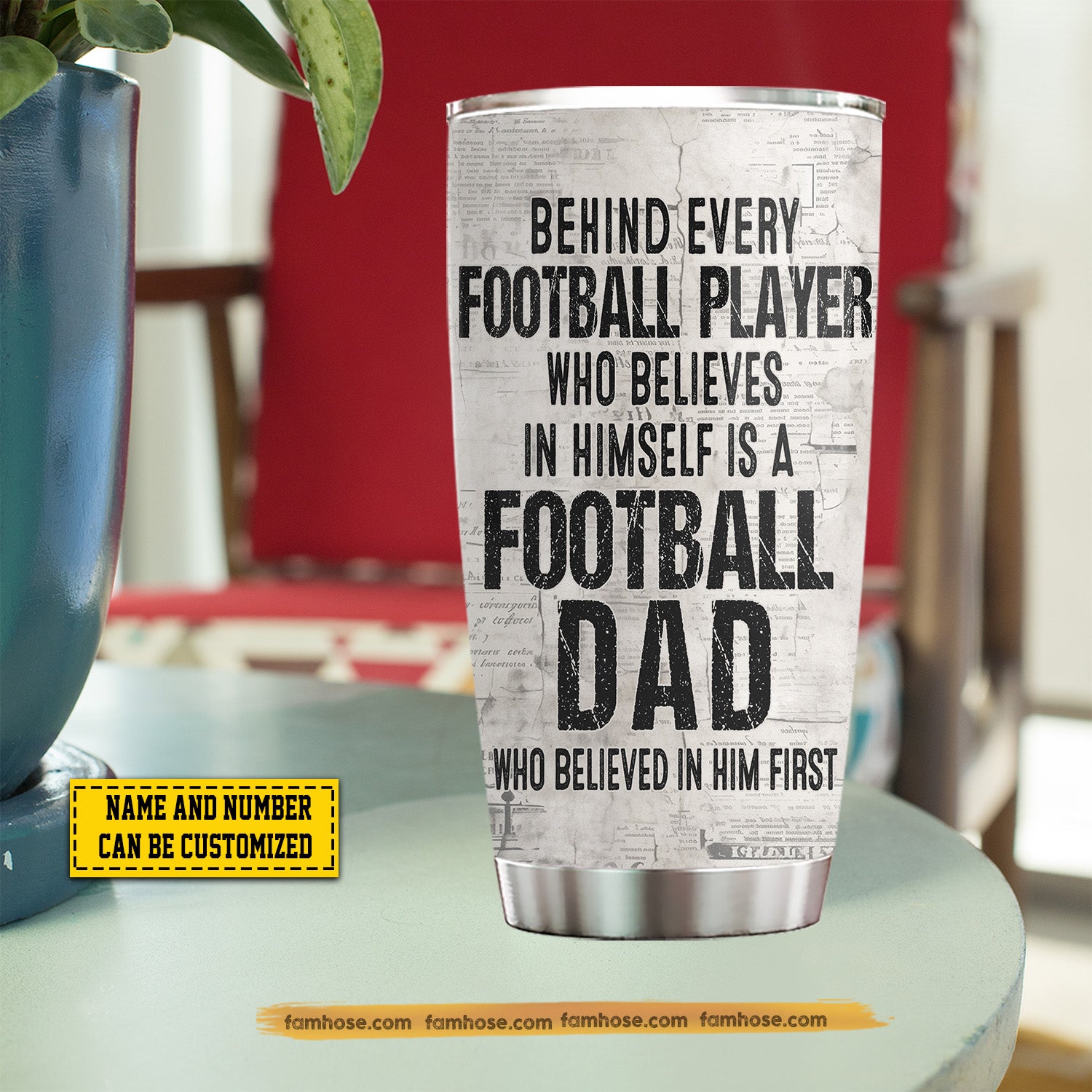 Personalized Football Dad Son Tumbler, Behind Every Football Player Sports Stainless Steel Tumbler, Travel Mug Tumblers Father's Day Gift For Football Lovers