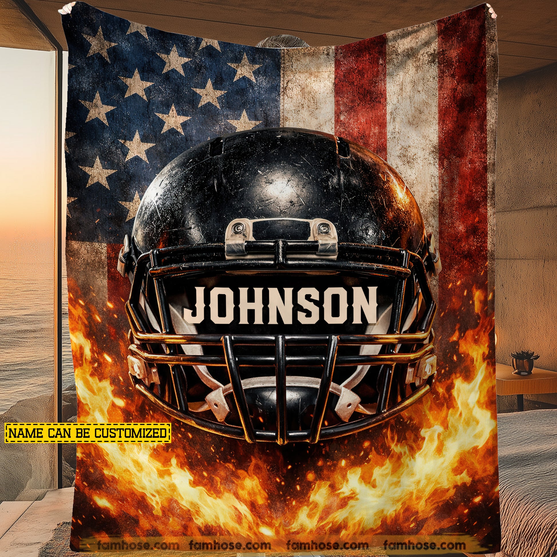 Personalized Football Fleece Blanket, American Football Helmet Woven Blanket, USA Flag Sherpa Blanket Gift For Football Lover