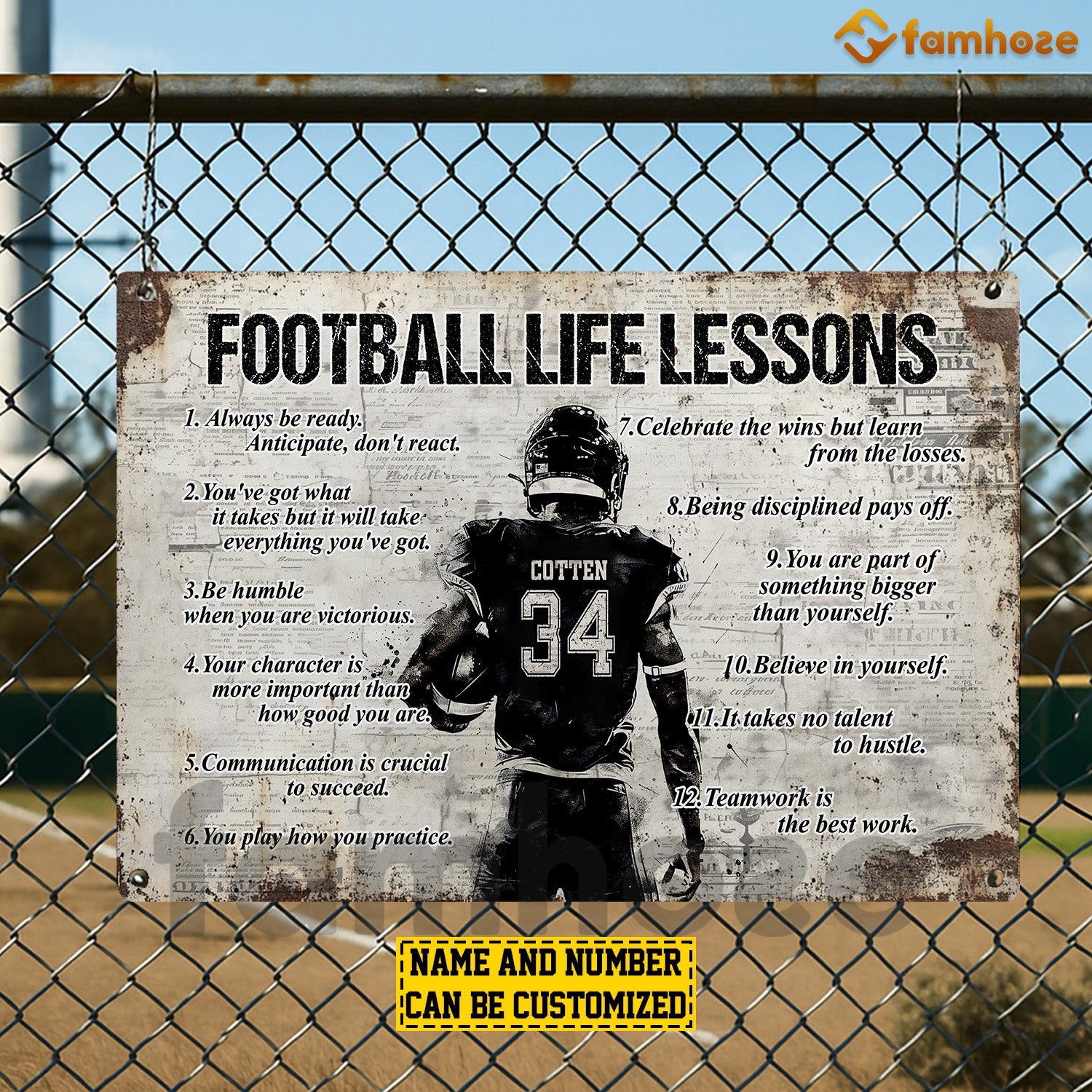 Personalized Football Man Metal Sign, Inspirational Football Life Lessons Sports Sign, Field Decor Gift For Football Lovers