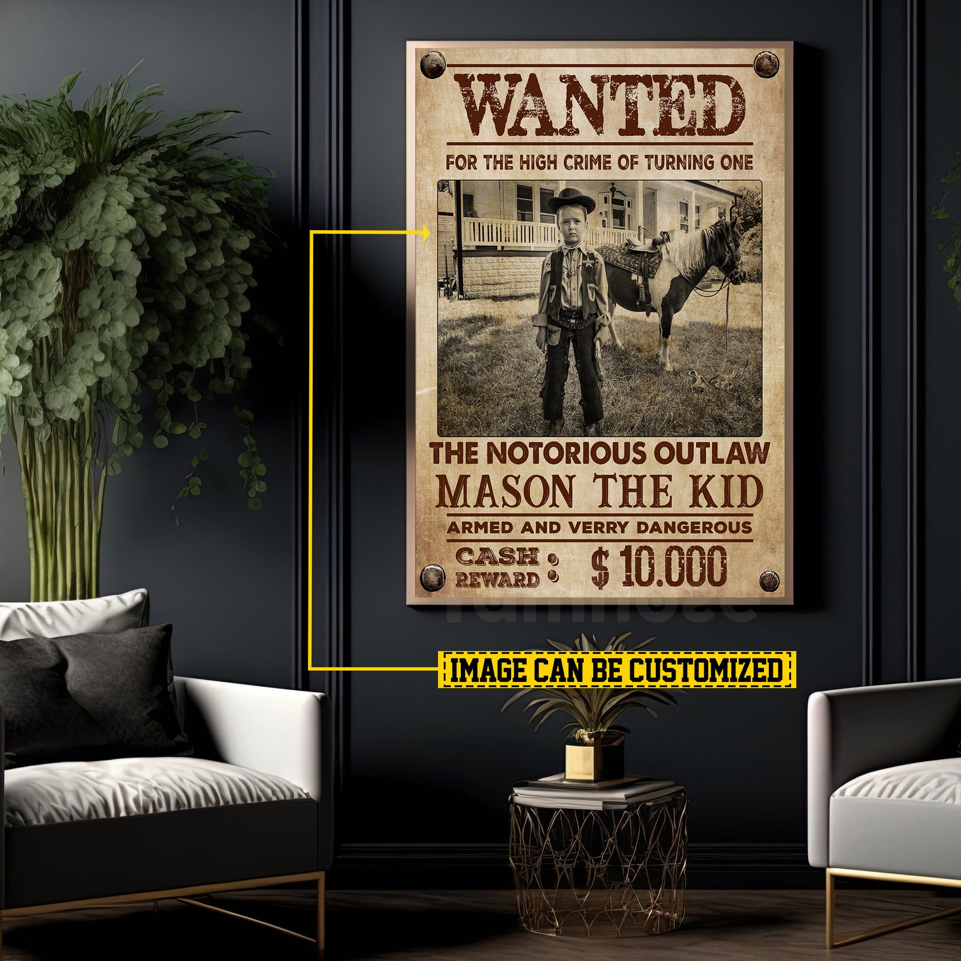 Personalized Funny Cowboy Kid Canvas Painting, The Notorious Outlaw Wall Art Decor, Poster Gift For Cowboy Lovers