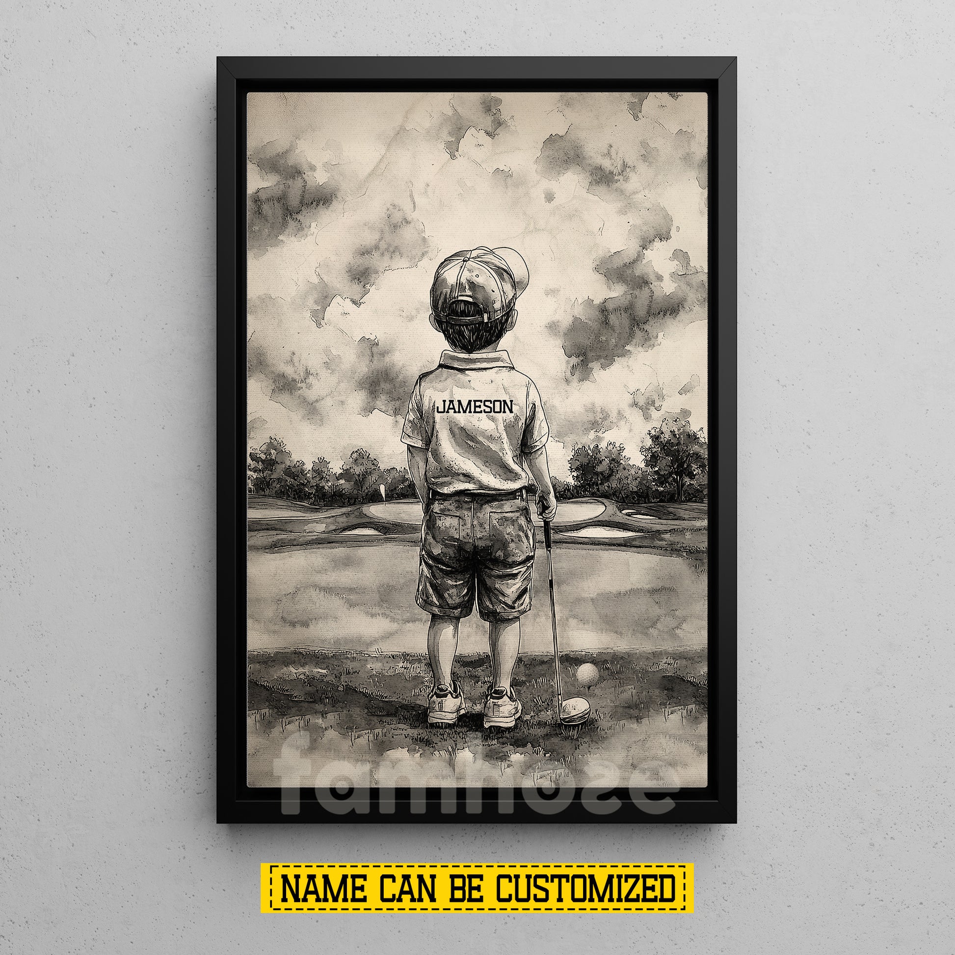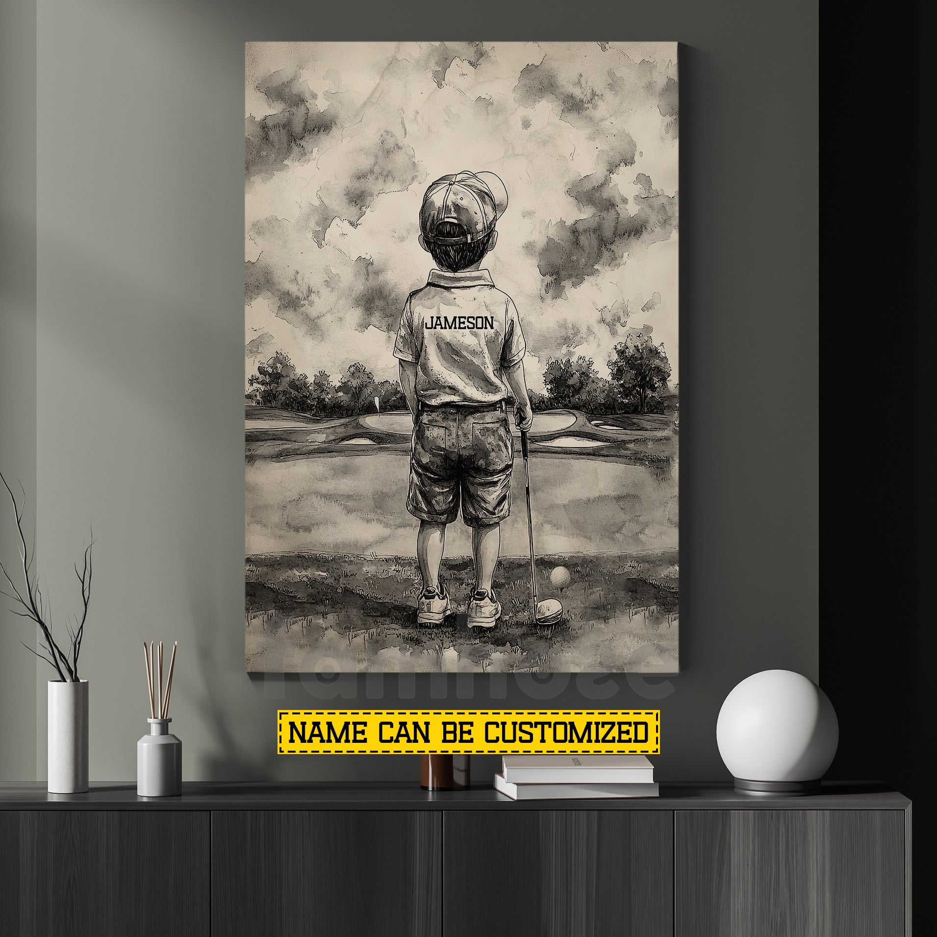 Personalized Golf Boy Kid Canvas Painting, Little Golfer, Big Dreams Sport Wall Art Decor, Poster Gift For Golf Lover