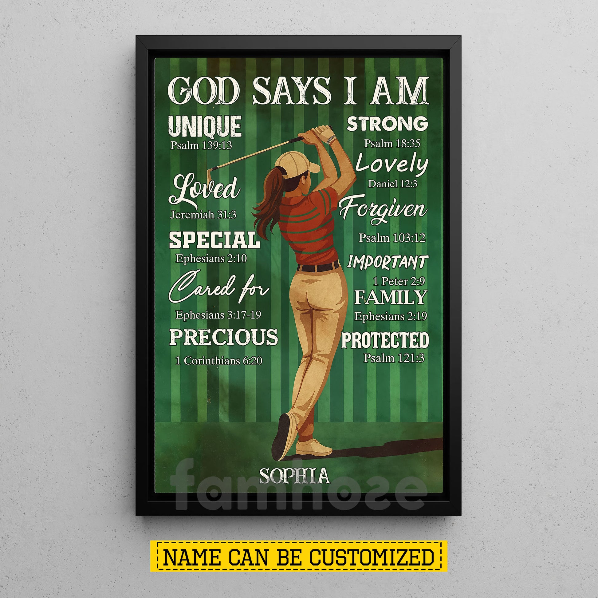 Personalized Golf Girl Canvas Painting, God Says I Am Sport Wall Art Decor, Poster Gift For Golf Lover