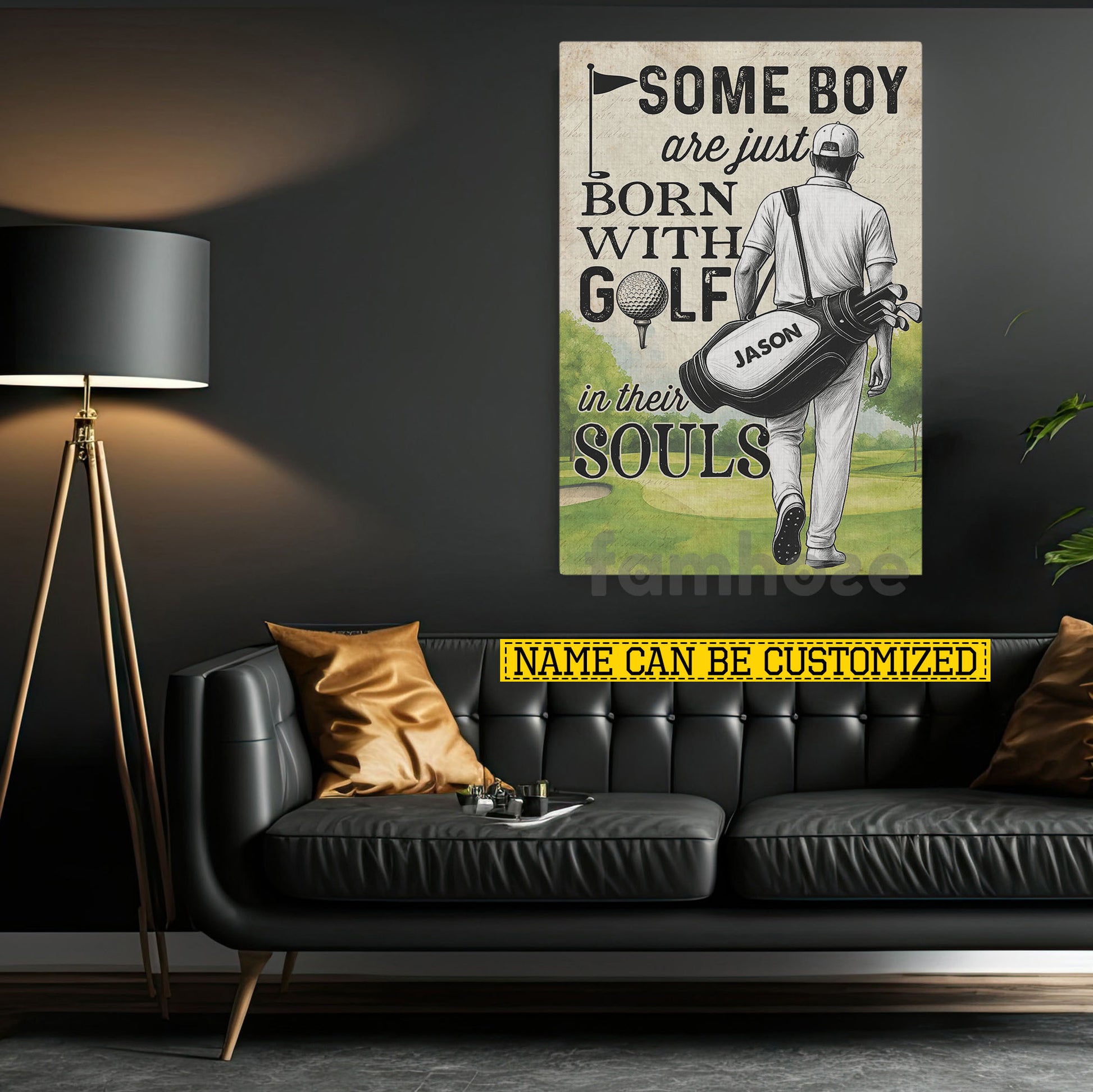 Personalized Golf Man Canvas Painting, Some Boy Are Just Born With Golf Sport Wall Art Decor, Poster Gift For Golf Lover