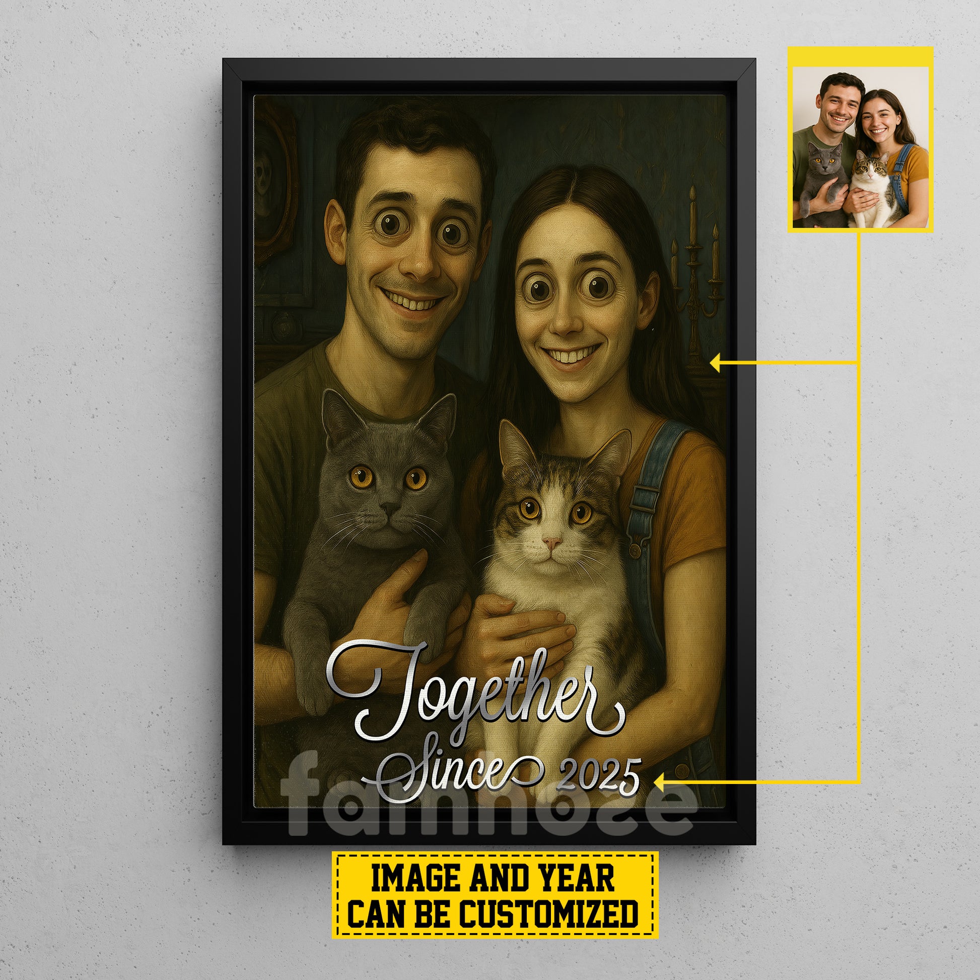 Personalized Halloween Couple Cat Canvas Painting, Together Wall Art Decor, Spooky Season Poster Gift For Couple, Cat Lovers