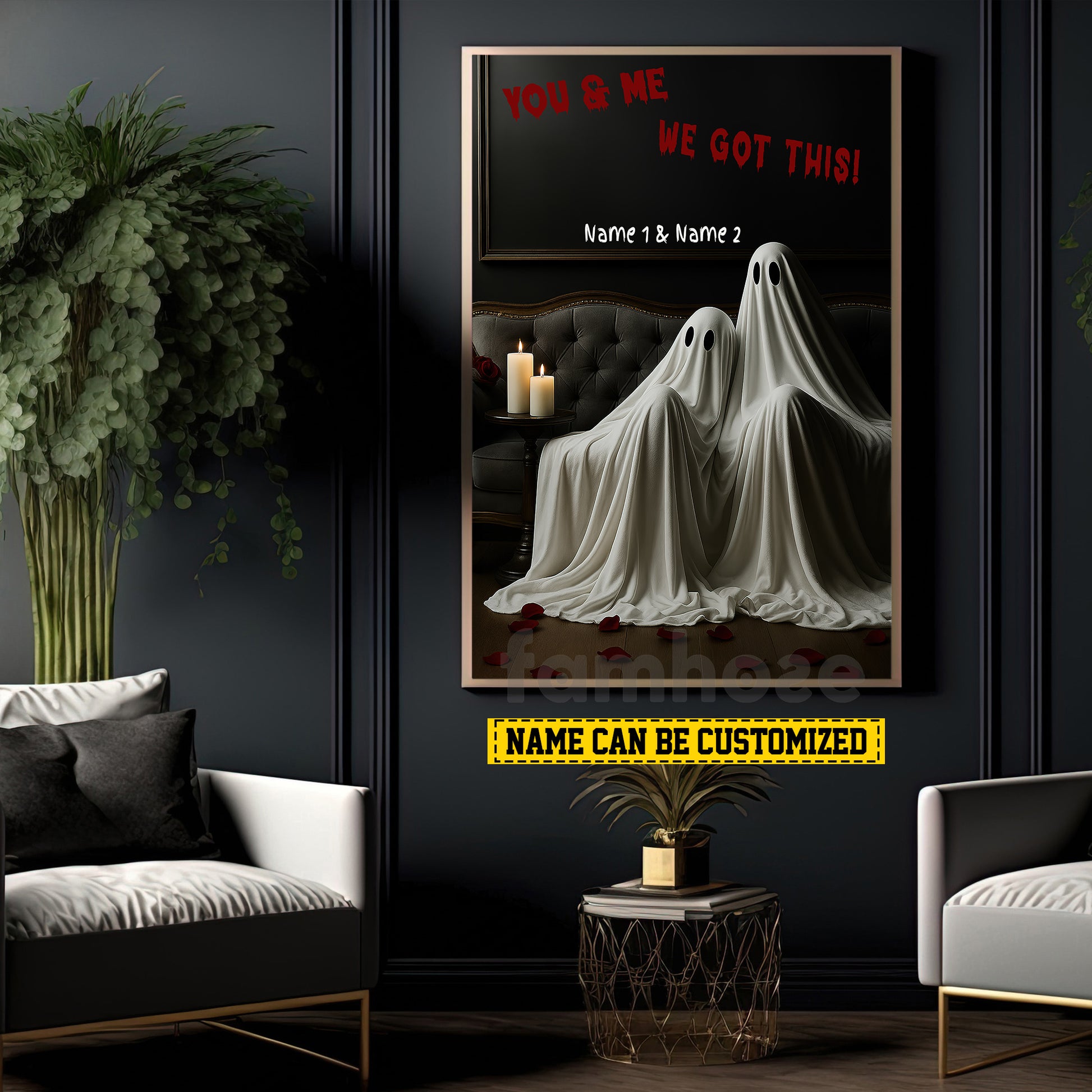 Personalized Halloween Couple Ghost Canvas Painting, You & Me We Got This Wall Art Decor, Spooky Season Poster Gift For Couple