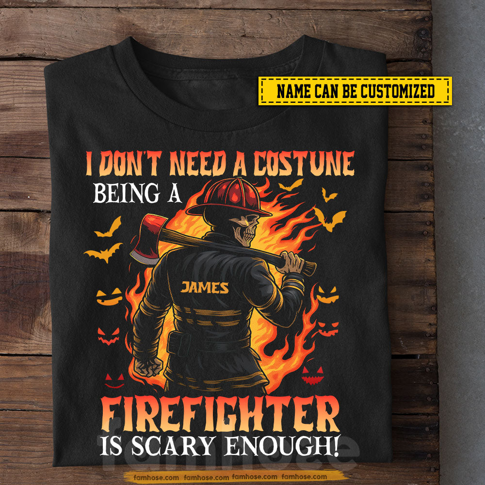 Personalized Halloween Firefighter T-shirt, I Don't Need A Costune Tees Spooky Season Gift For Firefighter Lovers