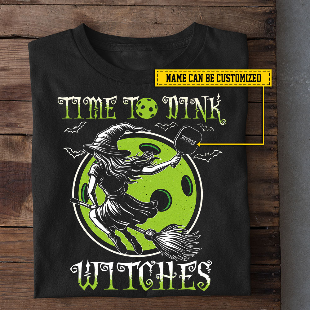 Personalized Halloween Pickleball Witch T-shirt, Time To Dink Witches Tees Spooky Season Gift For Pickleball Lovers
