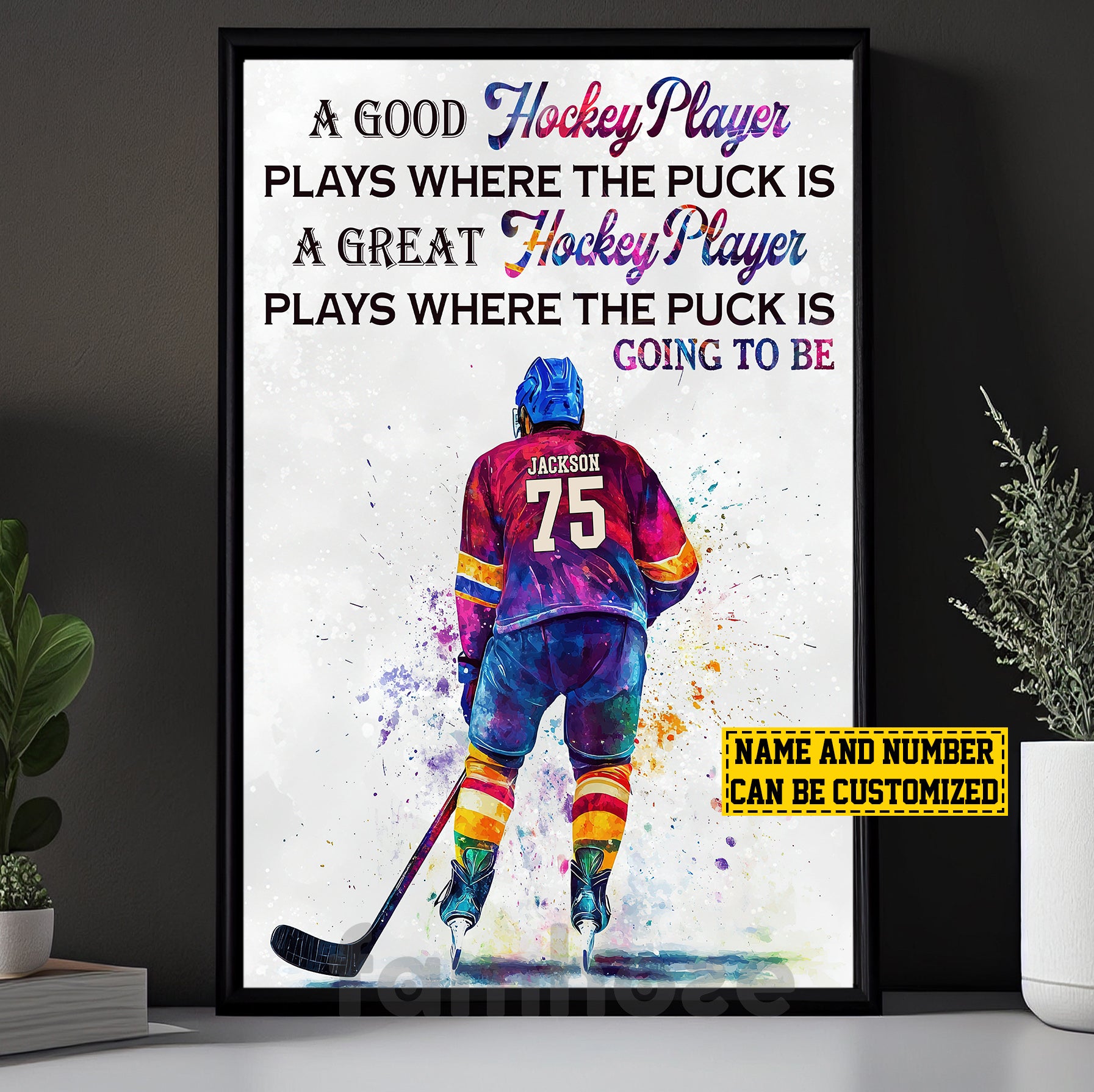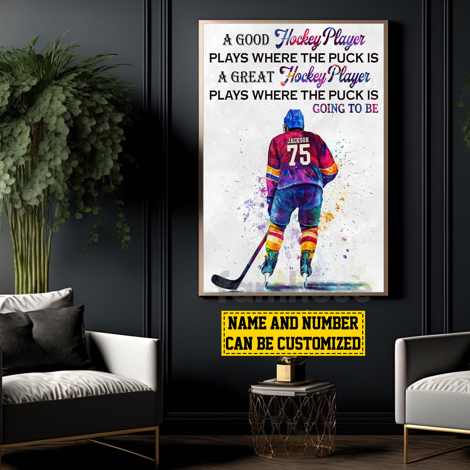 Personalized Hockey Canvas Painting, A Good Hockey Player Sports Wall Art Decor, Poster Gift For Hockey Lovers