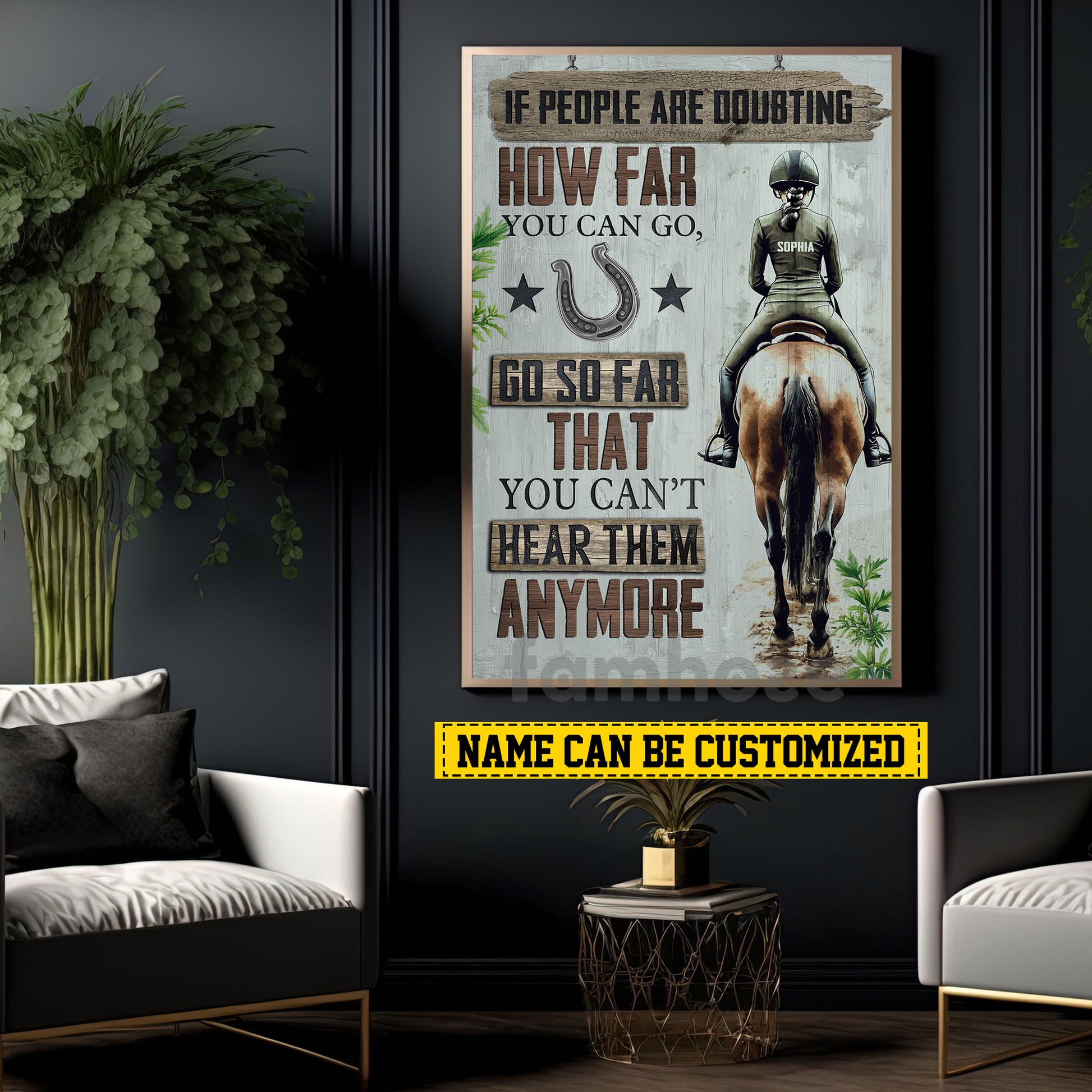 Personalized Horse Riding Girl Canvas Painting, If People Are Doubting How Far You Can Go Inspirational Quotes Wall Art Decor, Poster Gift For Horse Girl