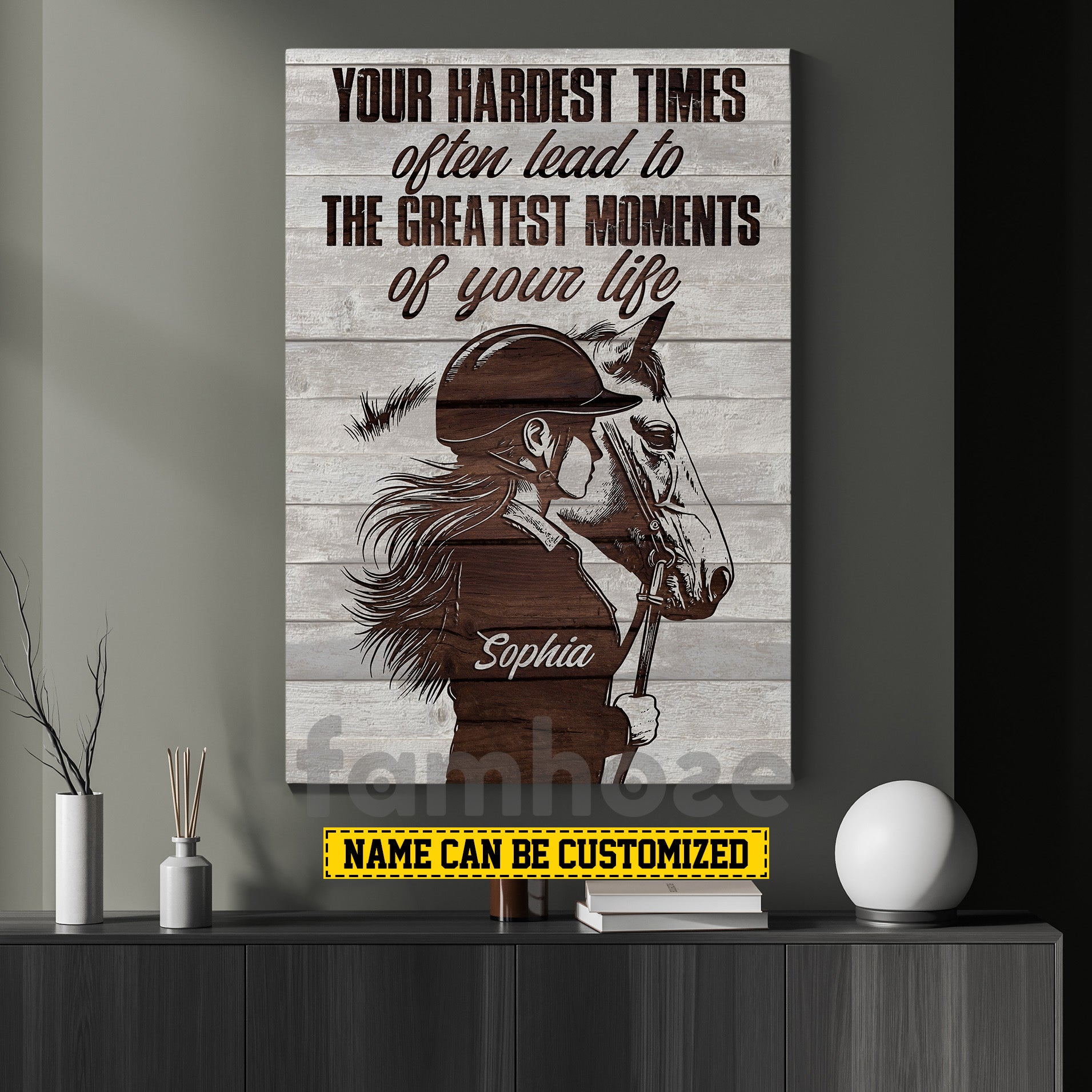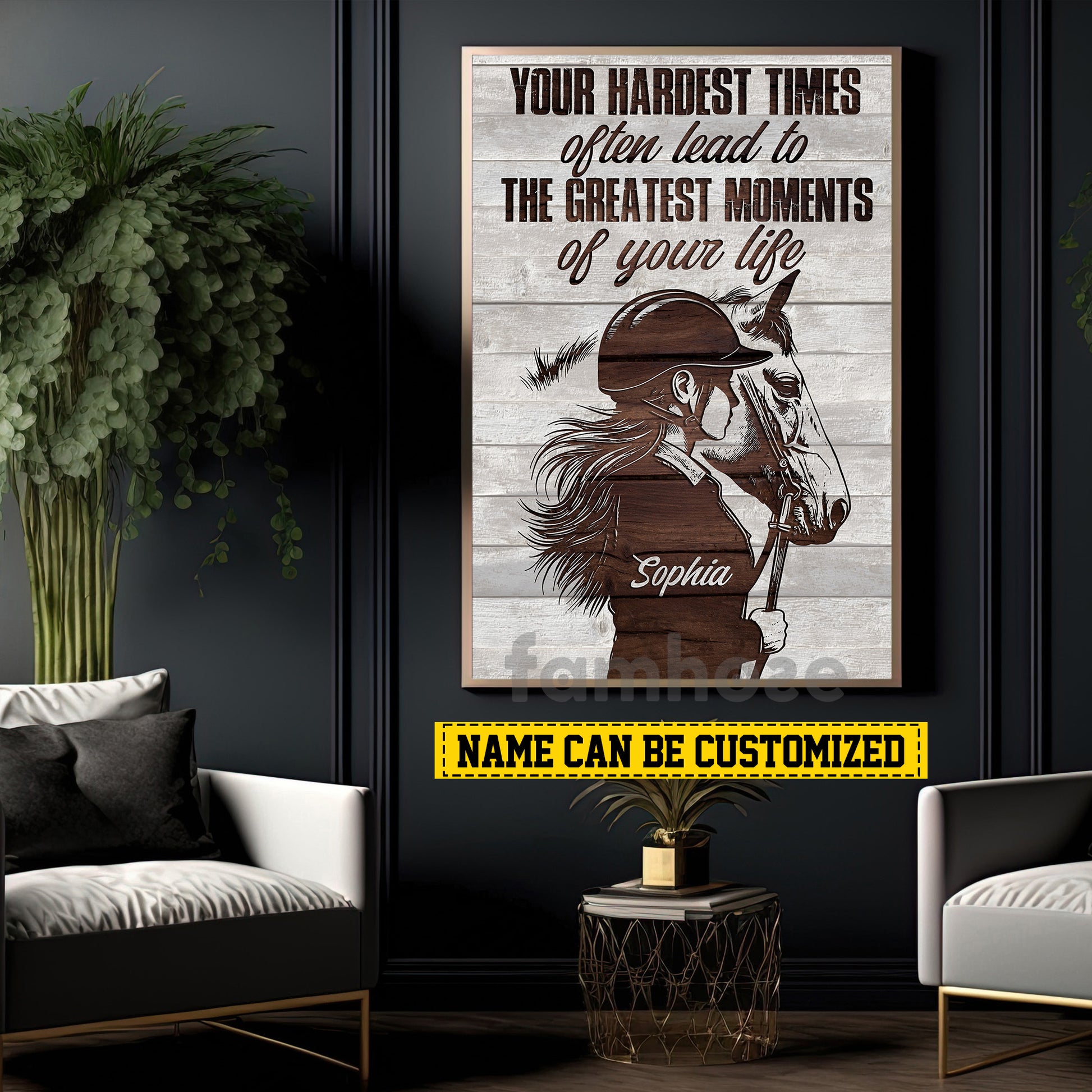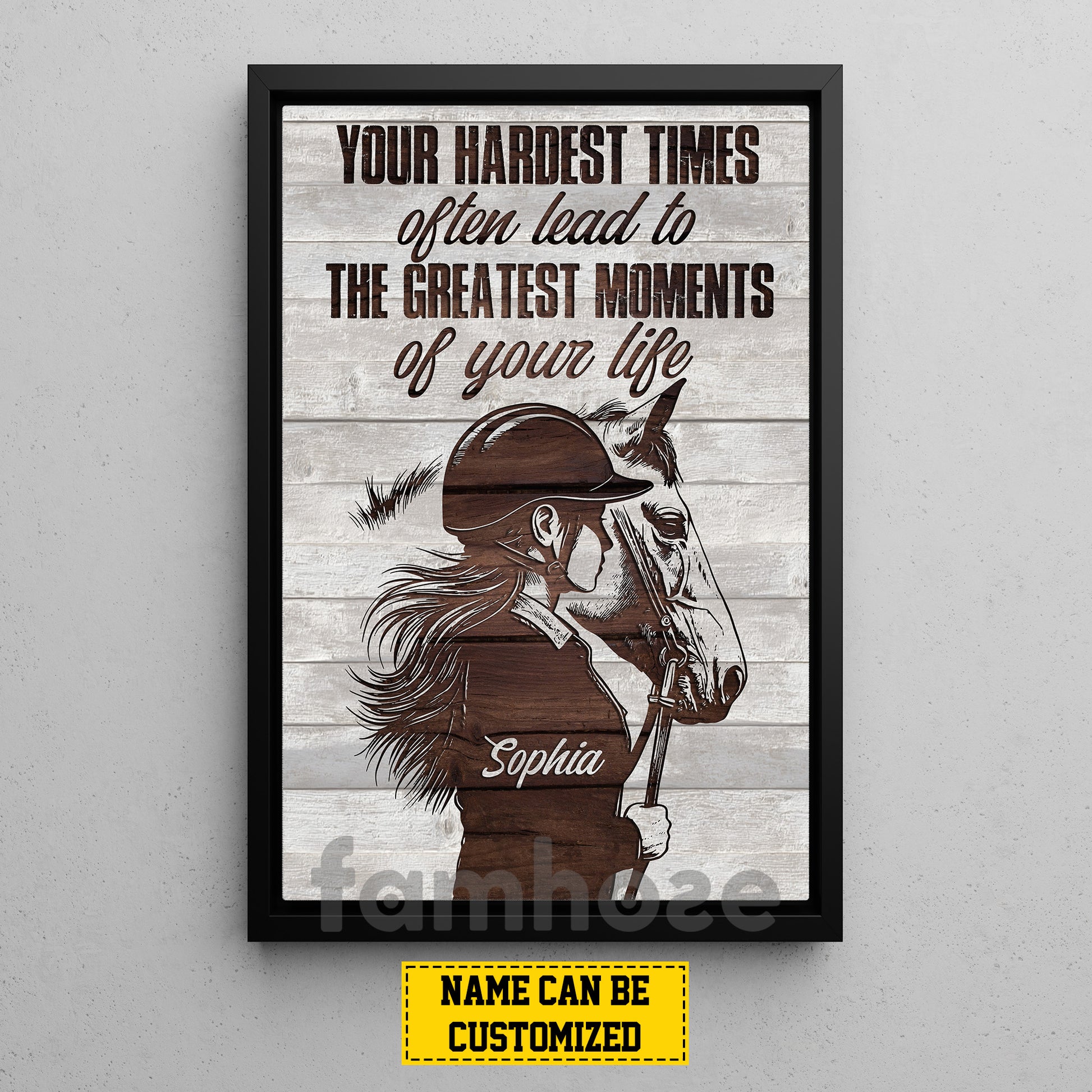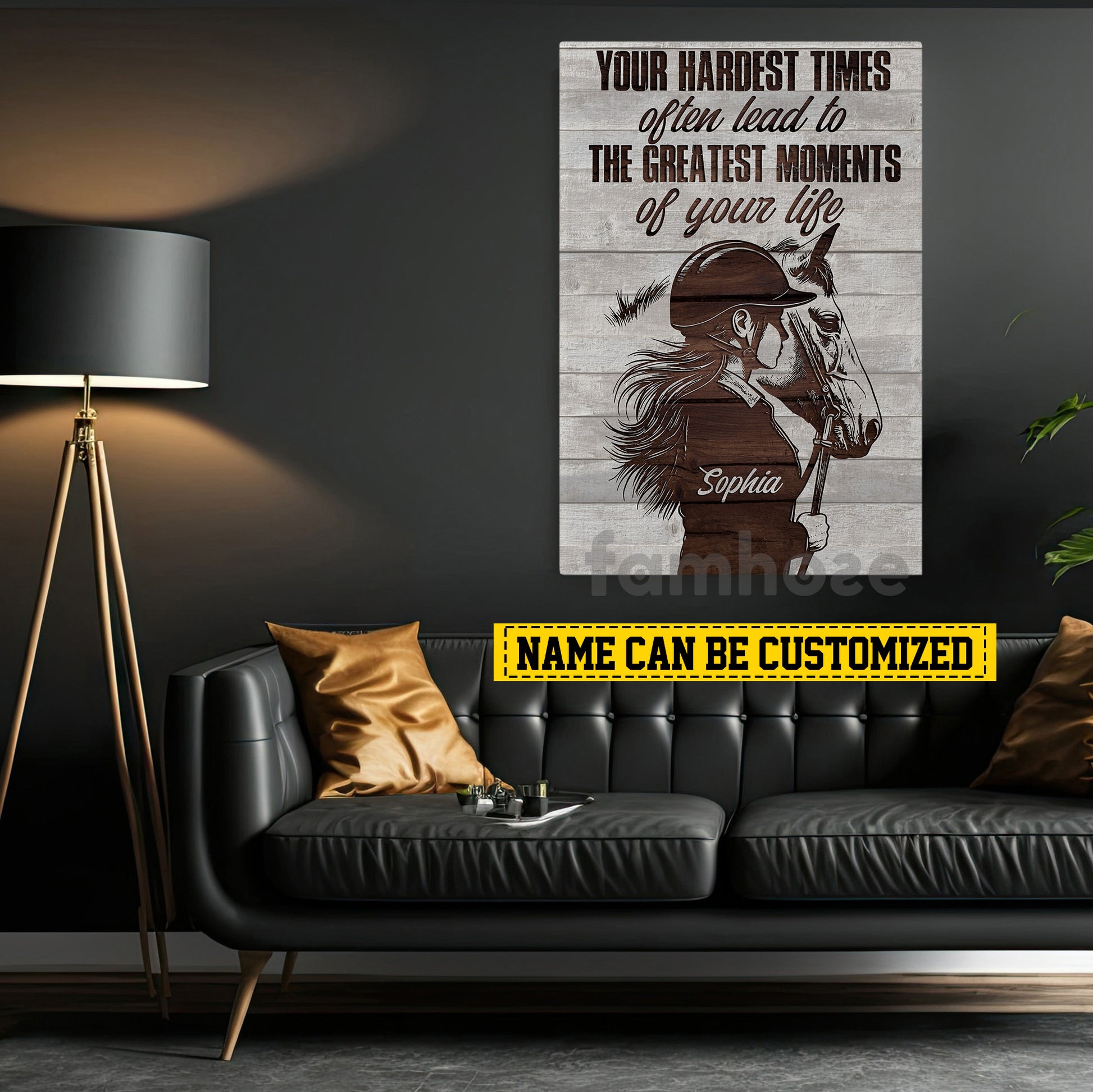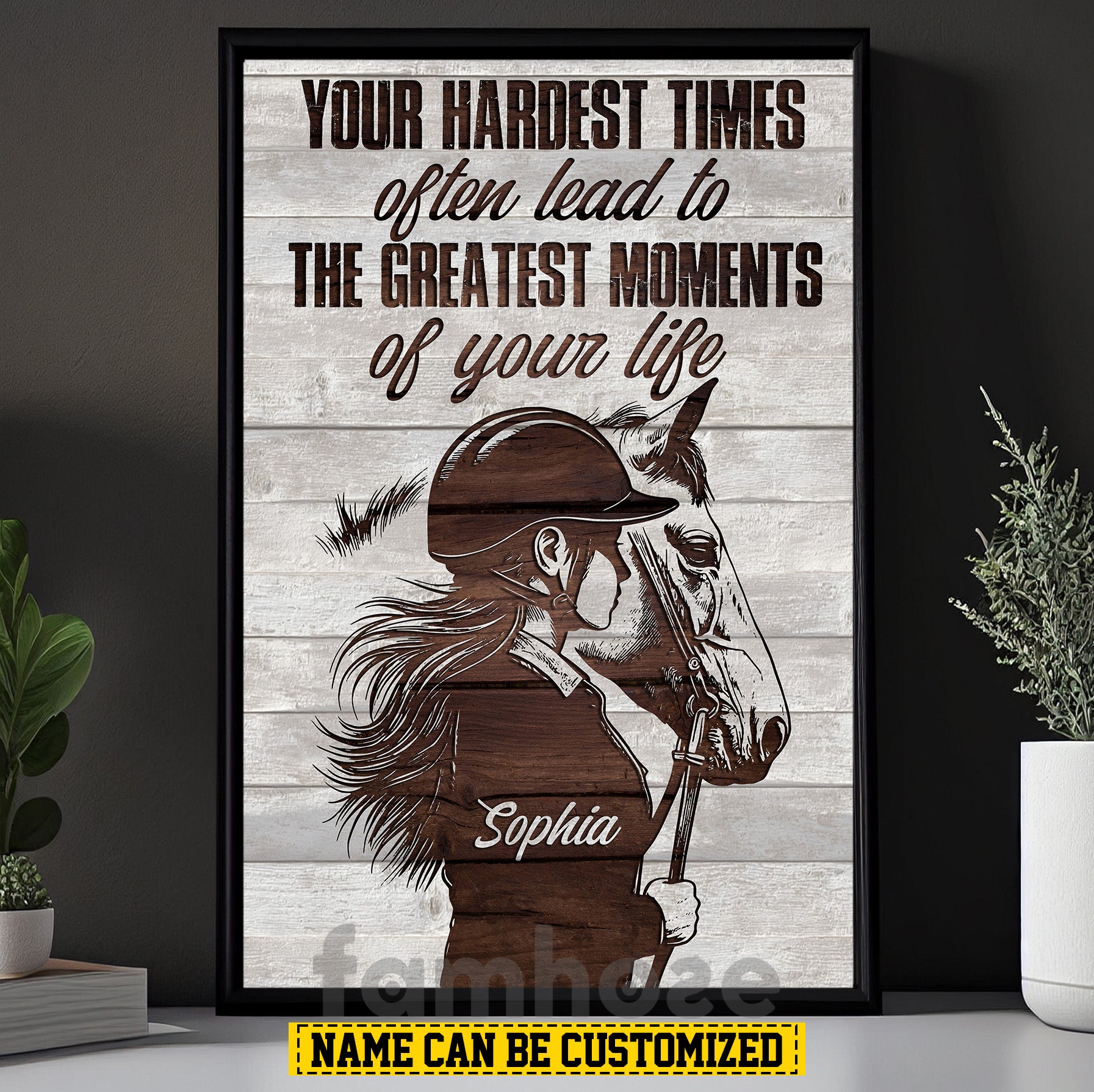 Personalized Horse Riding Girl Canvas Painting, Your Hardest Times Often Lead To The Greatest Moments Wall Art Decor, Poster Gift For Horse Girl