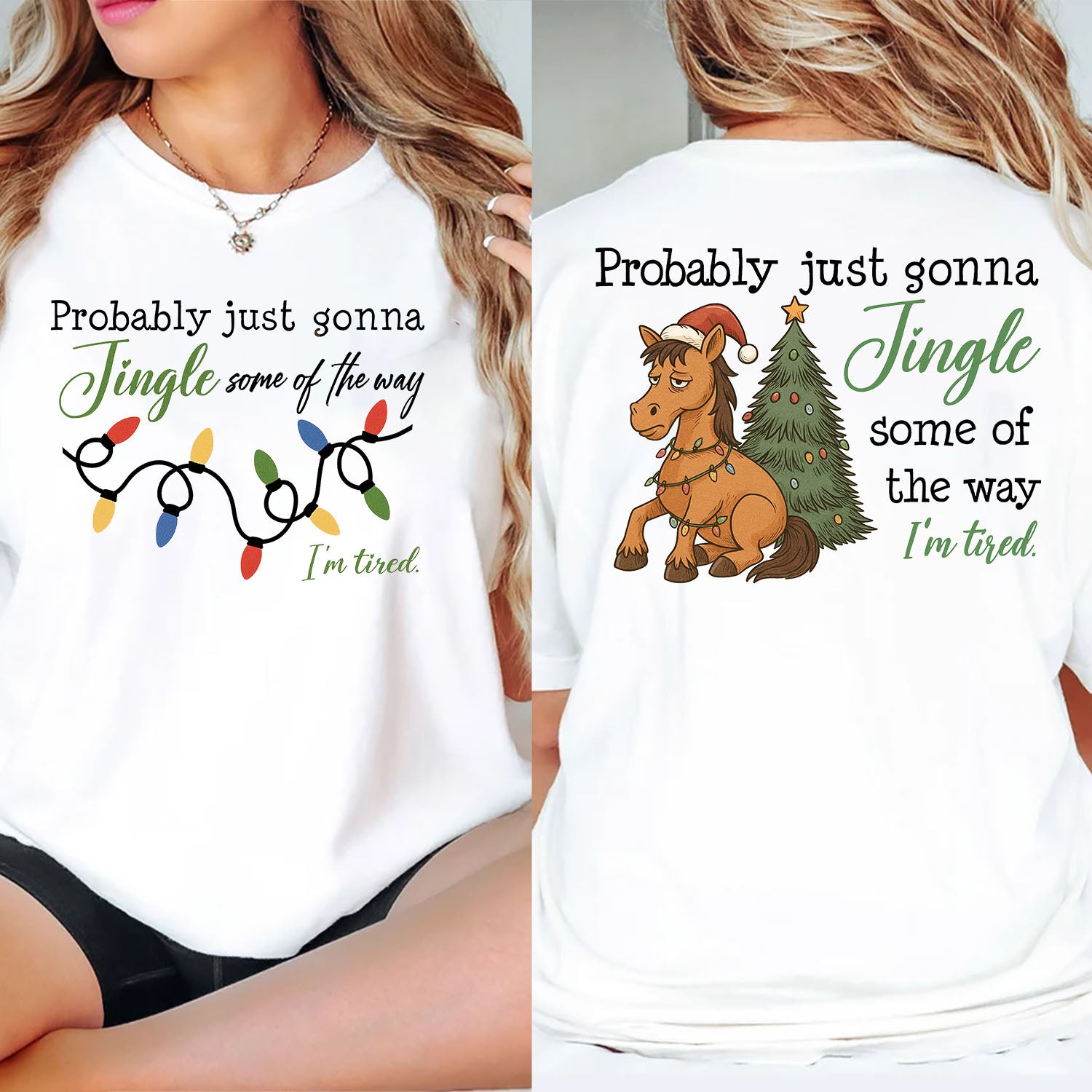 Personalized Horse Two-sided T-shirt, Probably Just Gonna Jingle Tees Xmas Gift For Horse Lovers