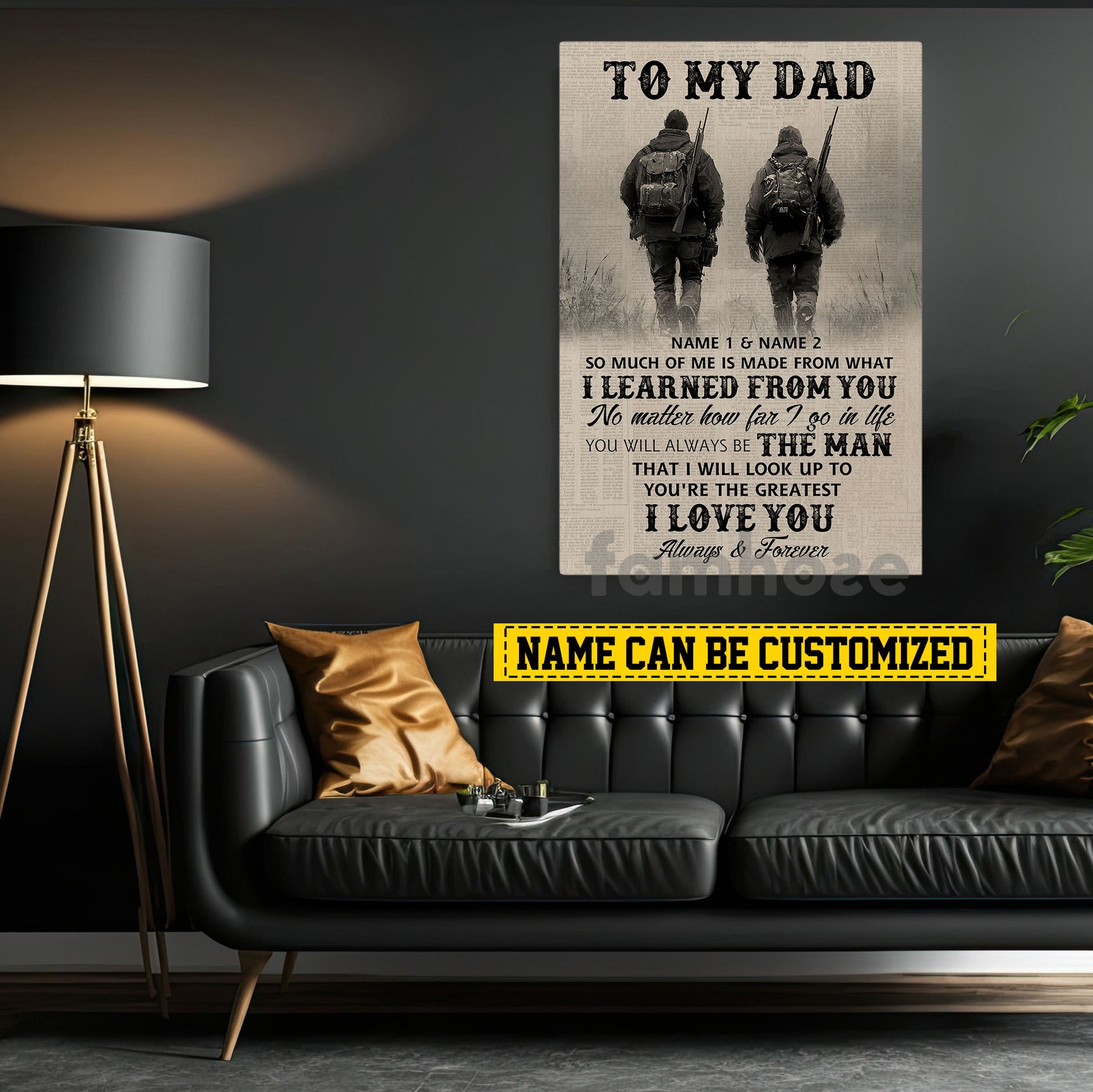 Personalized Hunting Dad Son Canvas Painting, To My Dad No Matter How Far I Go In Life Sport Wall Art Decor, Poster Father's Day Gift For Hunting Lovers