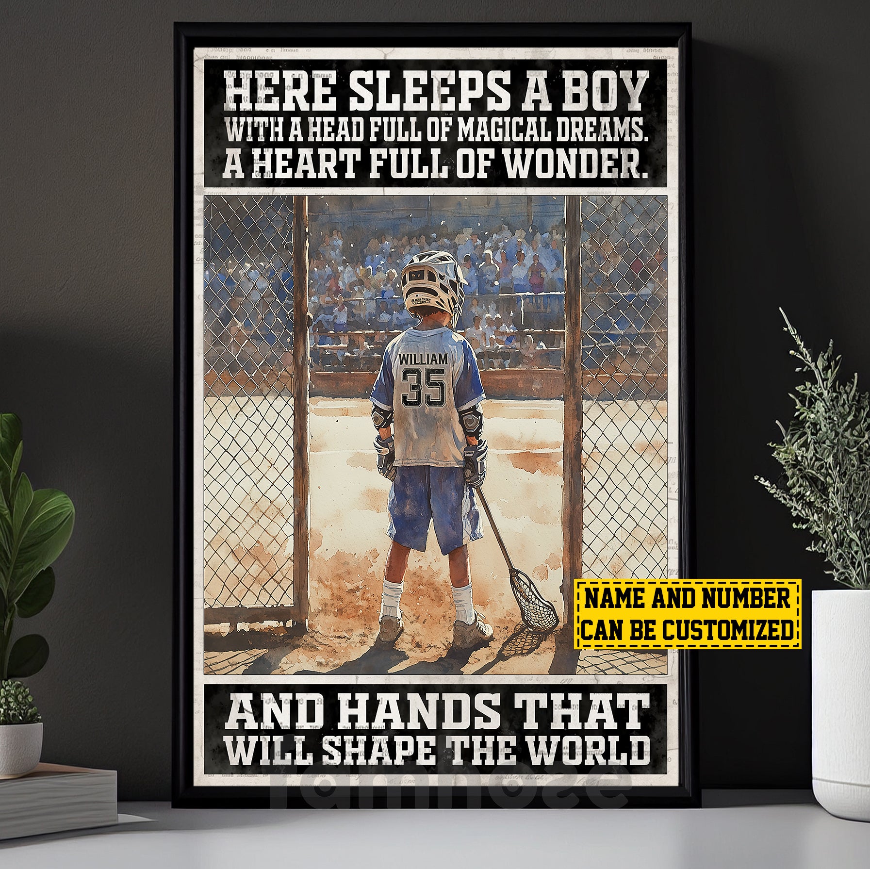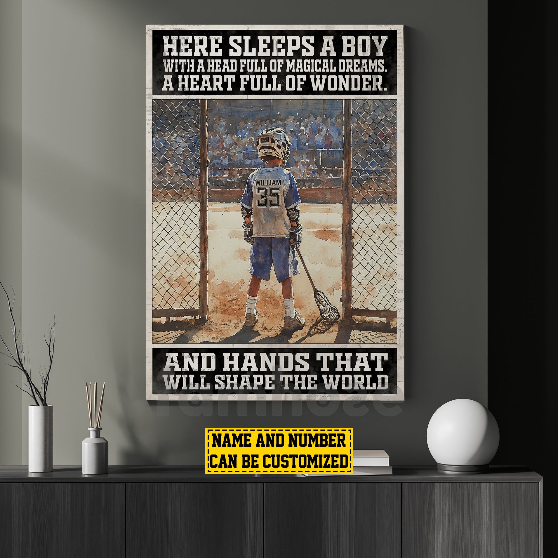 Personalized Lacrosse Boy Kid Canvas Painting, Here Sleeps A Boy Sport Wall Art Decor, Poster Gift For Lacrosse Lovers