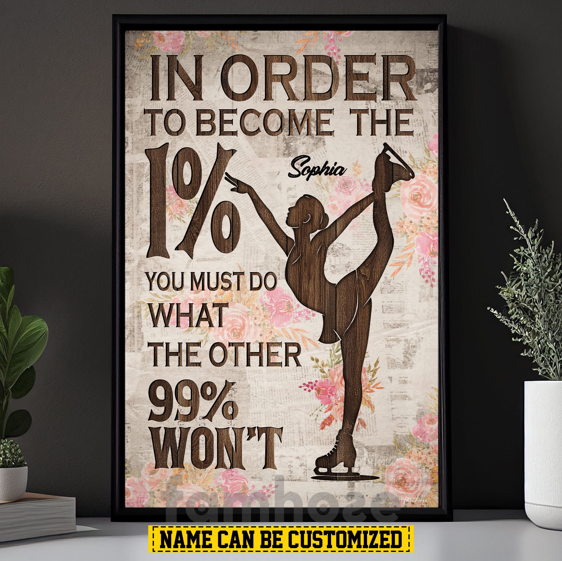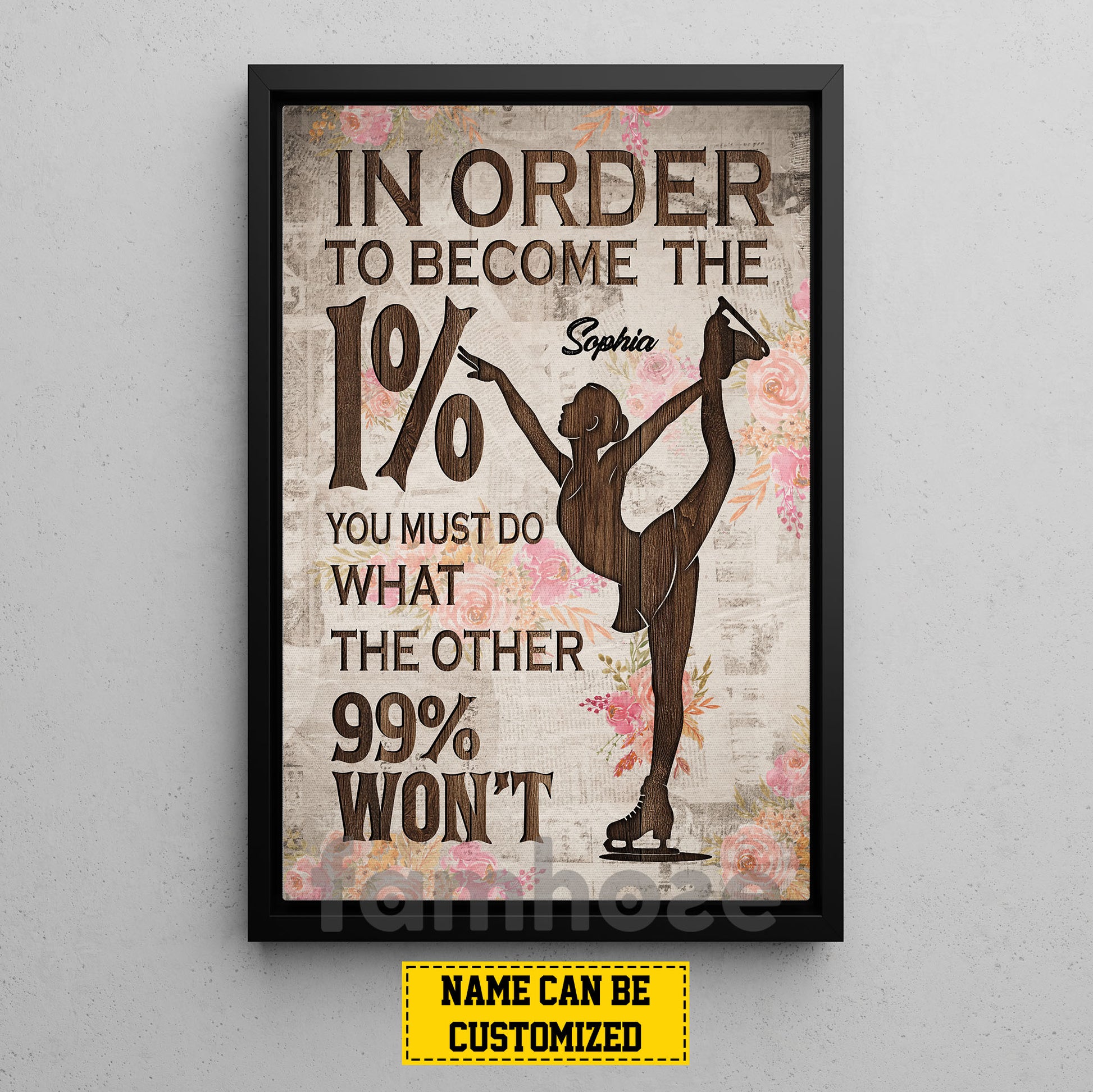 Personalized Motivational Ice Skating Girl Canvas Painting, In Order To Become The 1% You Must Do What The Other 99% Won't, Sports Wall Art Decor, Poster Gift For Ice Skating Lovers