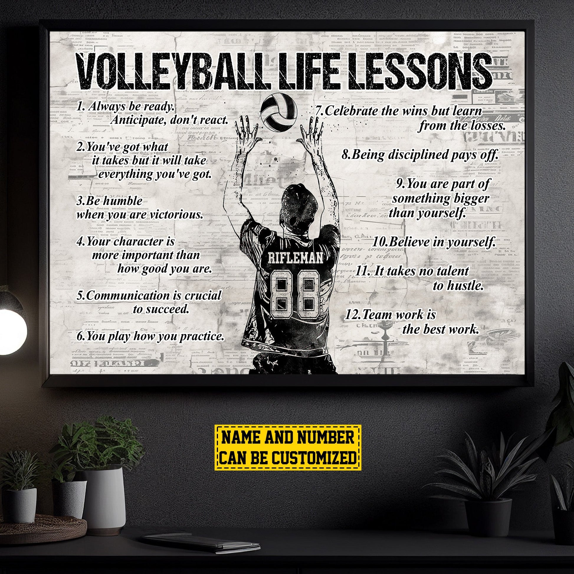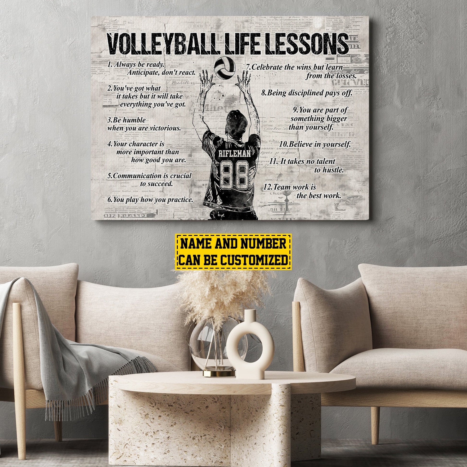 Personalized Motivational Volleyball Boys Canvas Painting, Volleyball Life Lessons, Inspirational Quotes Wall Art Decor, Poster Gift For Volleyball Lovers