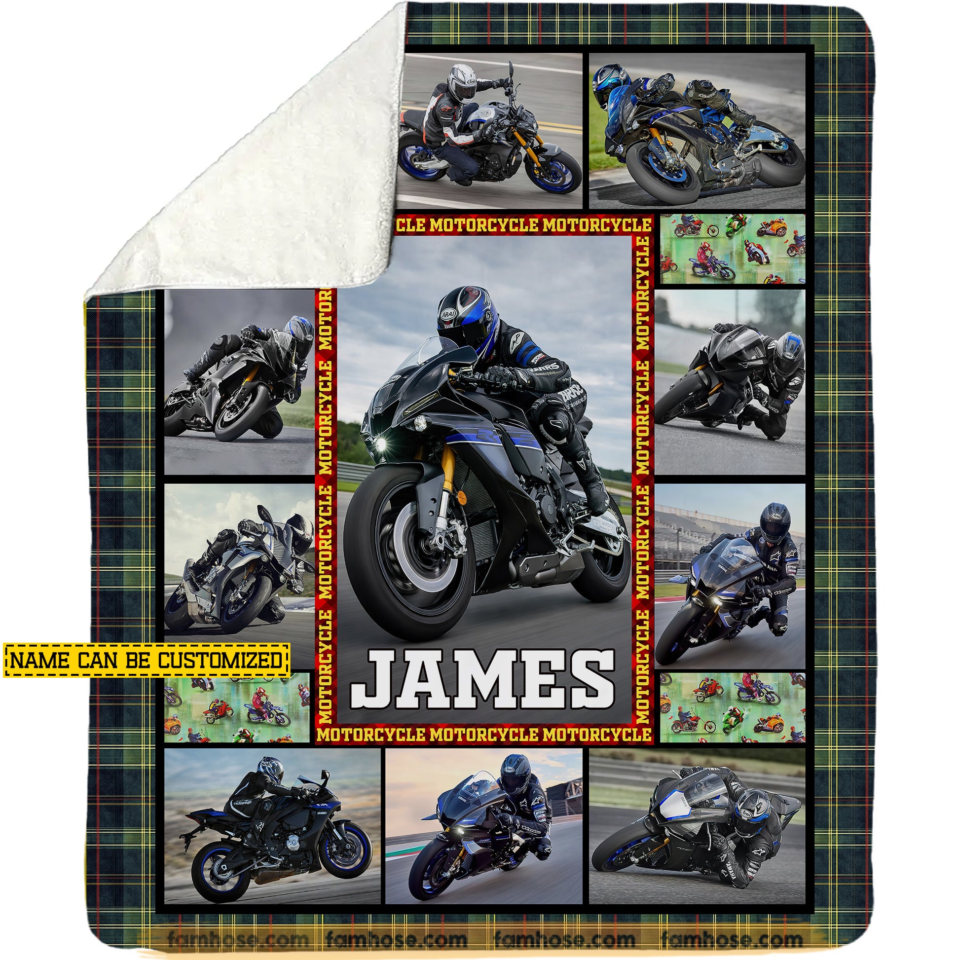Personalized Motorcycle Fleece Blanket, Born To Ride Destined For Speed Woven Blanket, Cozy Sherpa Blanket Gift For Biker