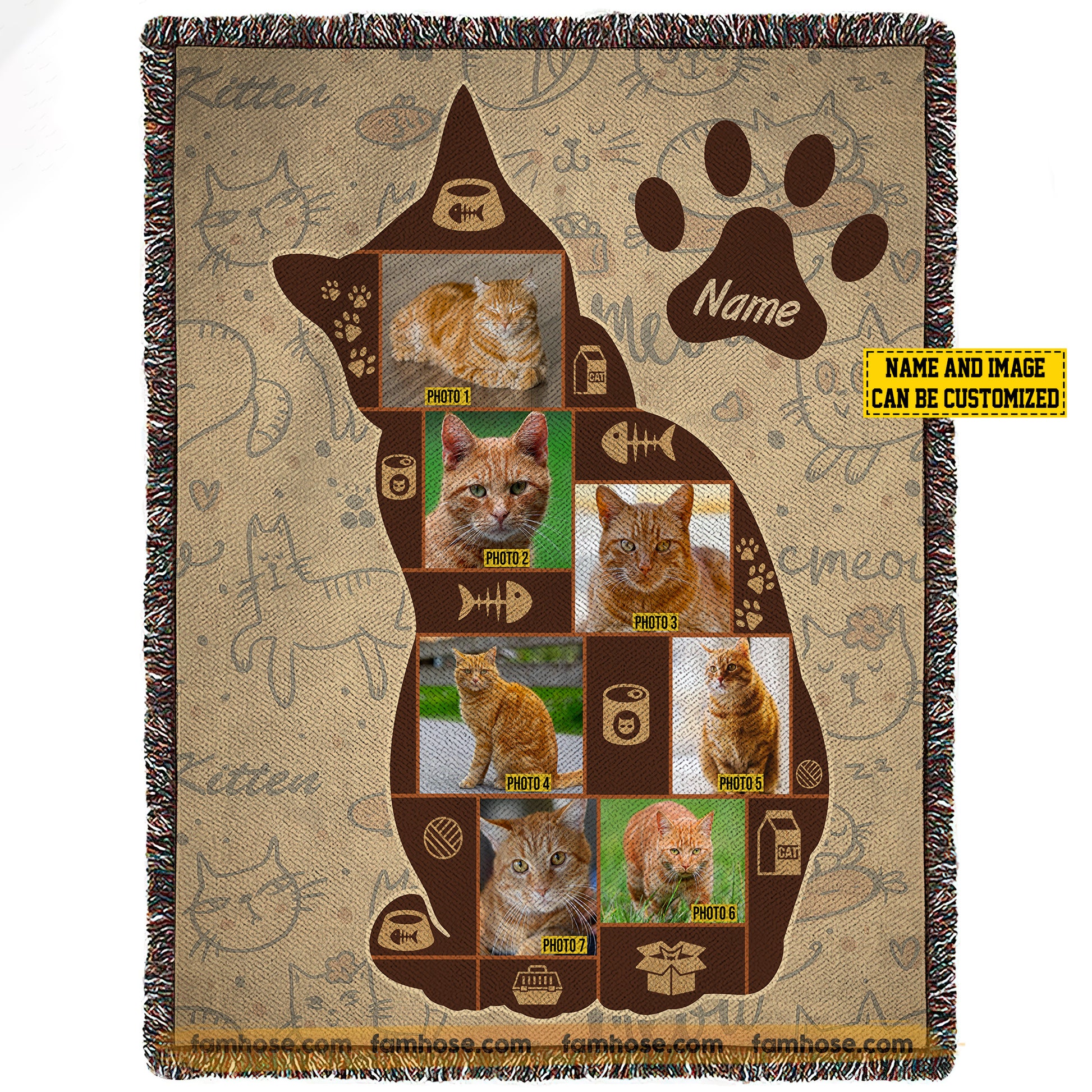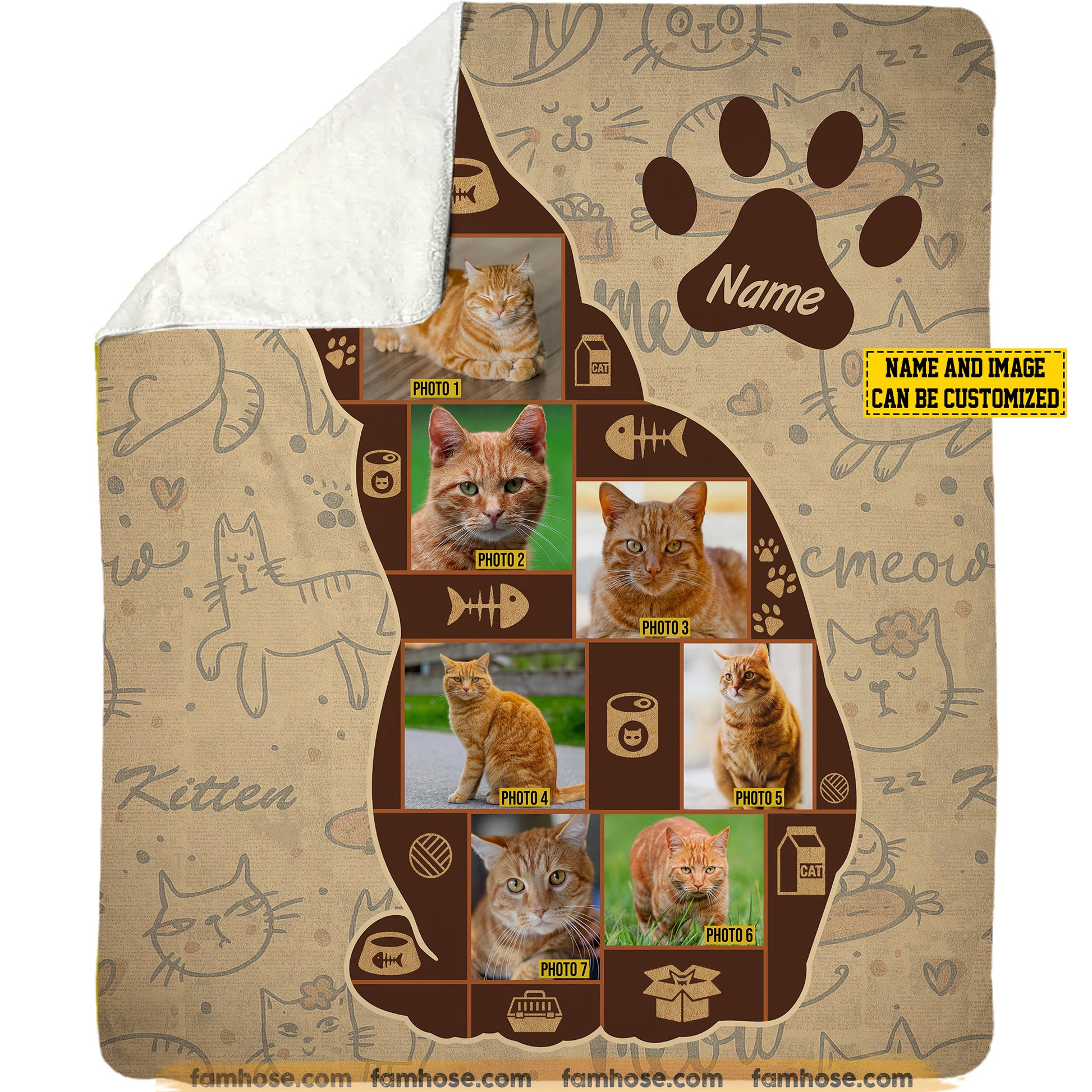 Personalized Photos Of Cat Fleece Blanket, Custom Cat Name Woven Blanket, Sherpa Blanket Gift For Cat Lovers