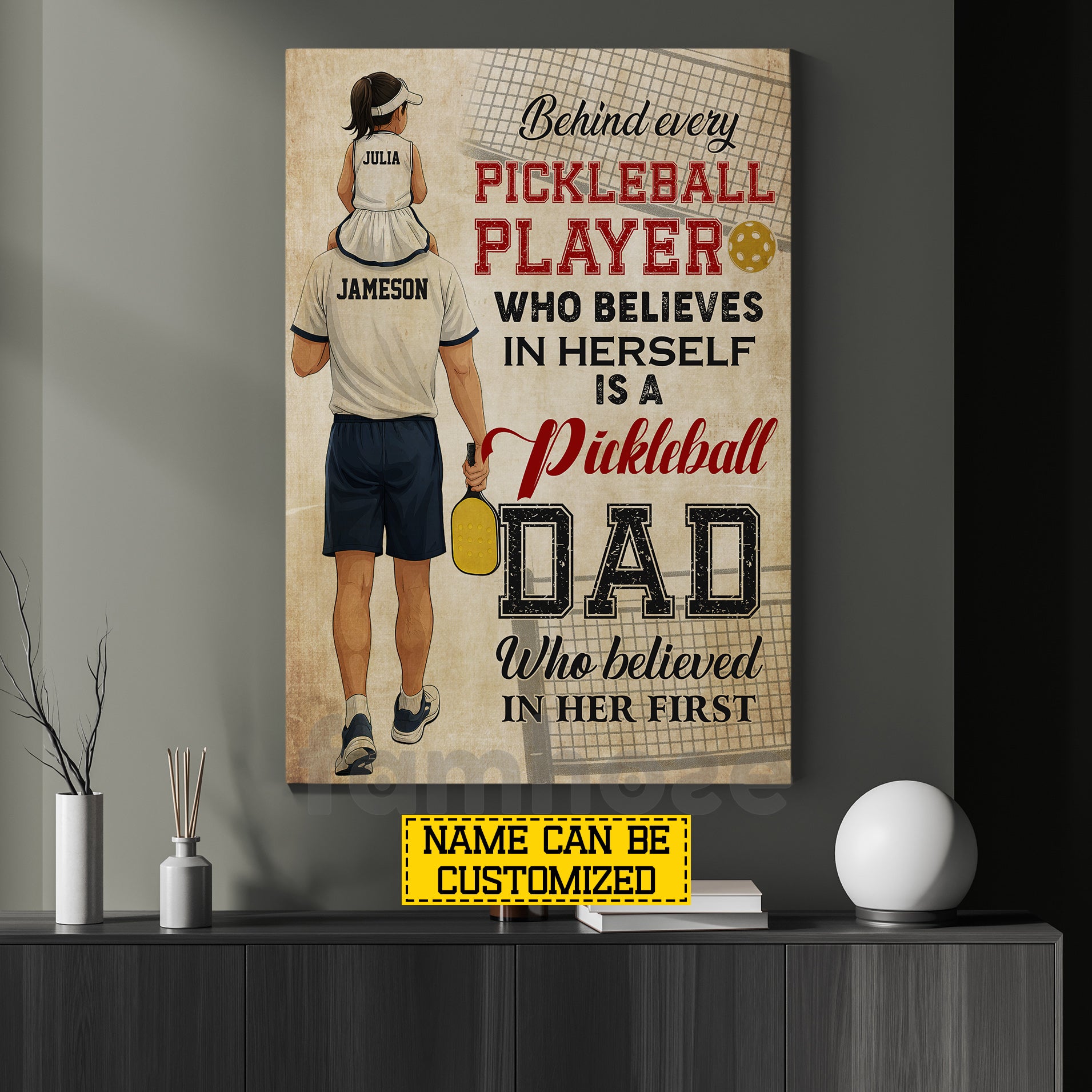 Personalized Pickleball Dad Girl Canvas Painting, Behind Every Pickleball Player Sport Wall Art Decor, Poster Gift For Pickleball Lover
