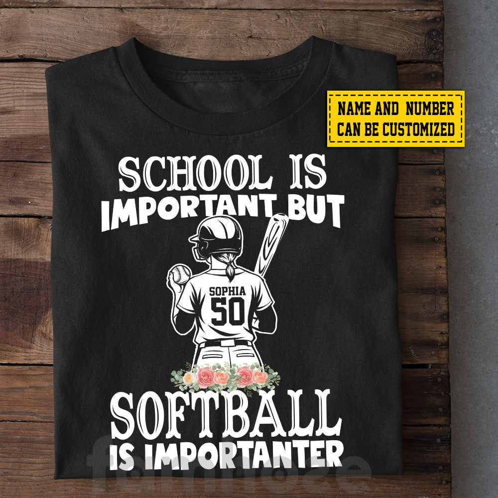 Personalized School Softball Girl T-shirt, School Is Important Tee Gift For Softball Lovers