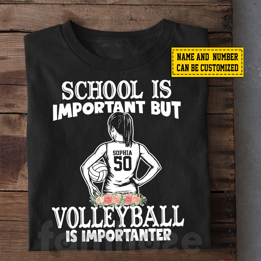 Personalized School Volleyball Girl T-shirt, School Is Important Tee Gift For Volleyball Lovers
