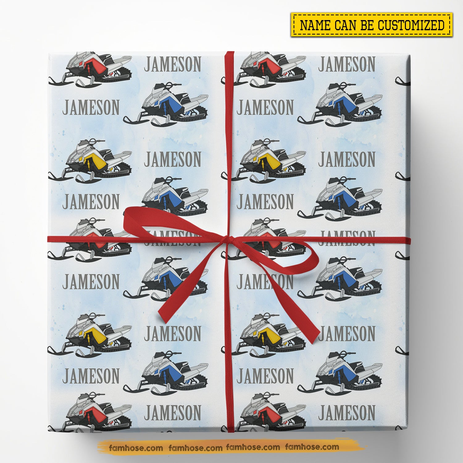 Personalized Snowmobiling Wrapping Paper, Winter Snowmobile Wrapping Paper Rolls, Gift Wrap For Snowmobiling Lover