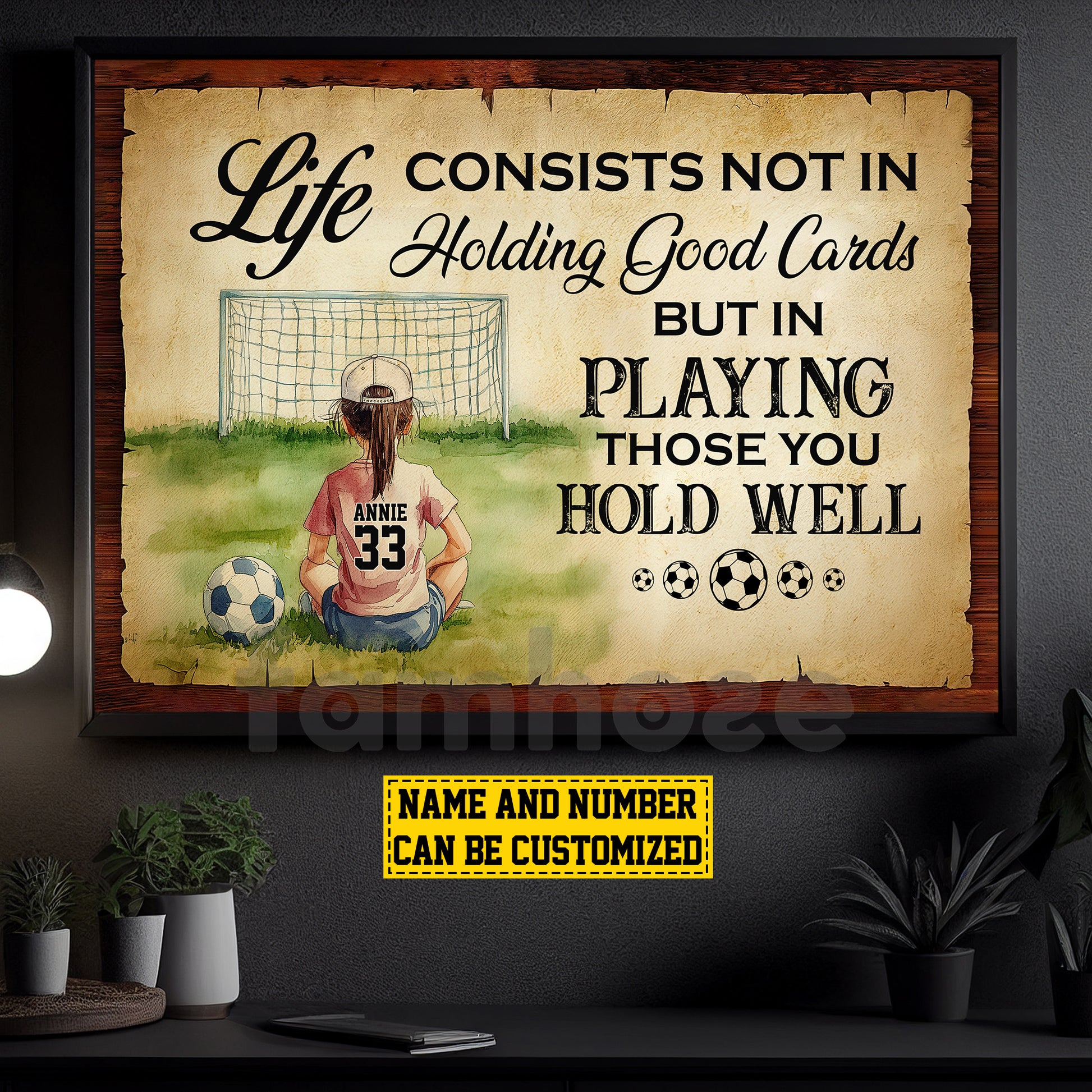 Personalized Soccer Girl Canvas Painting, Life Consists Not In Holding Good Cards Sport Wall Art Decor, Poster Gift For Soccer Lovers
