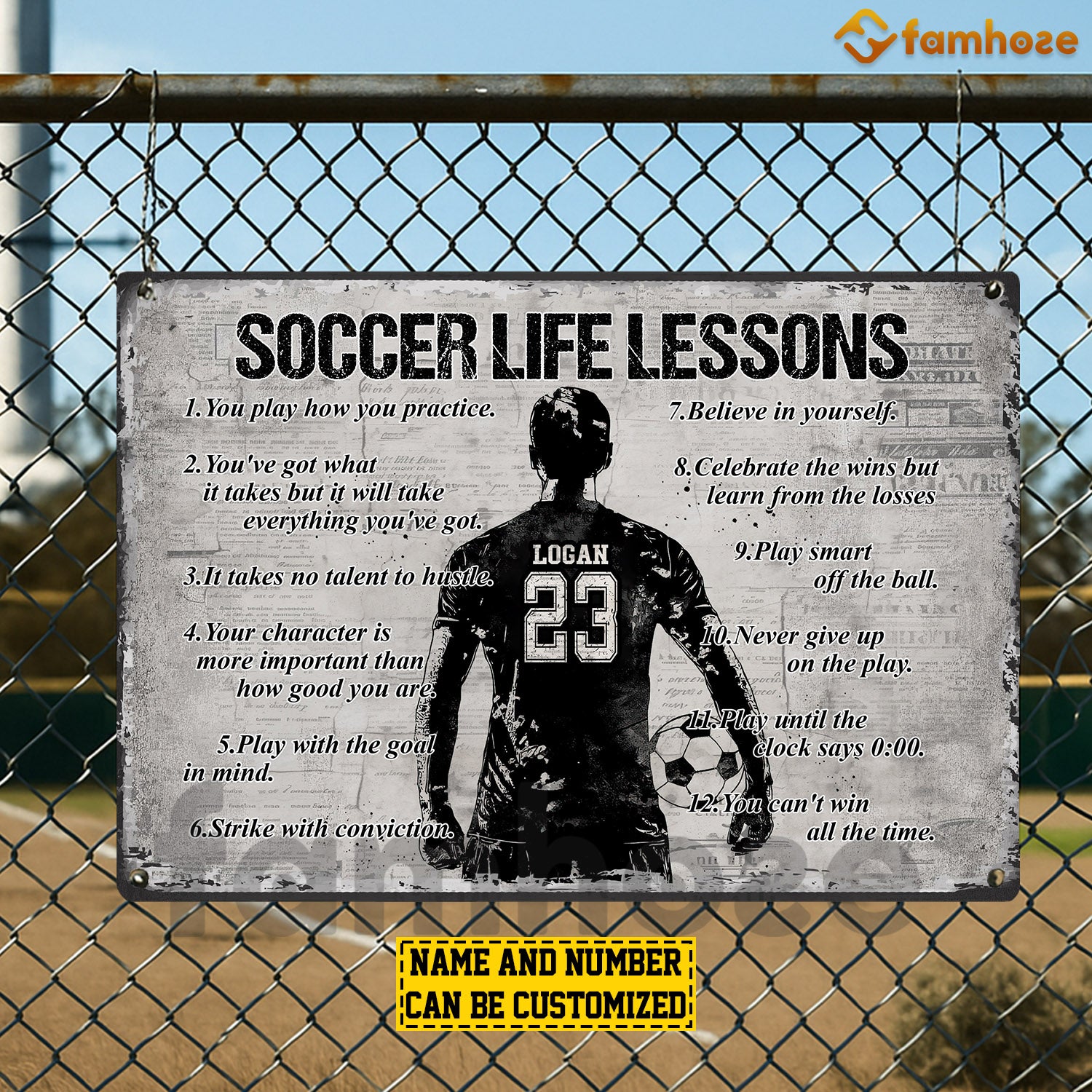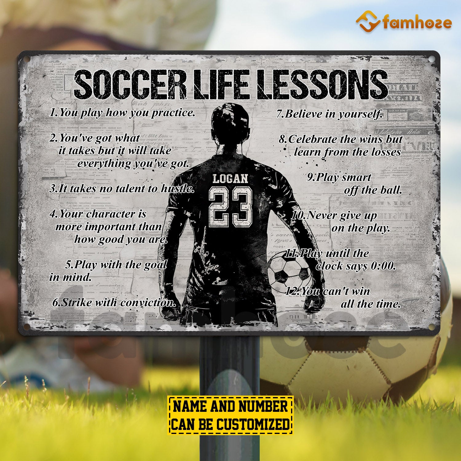 Personalized Soccer Man Metal Sign, Inspirational Soccer Life Lessons Sports Sign, Field Decor Gift For Soccer Lovers