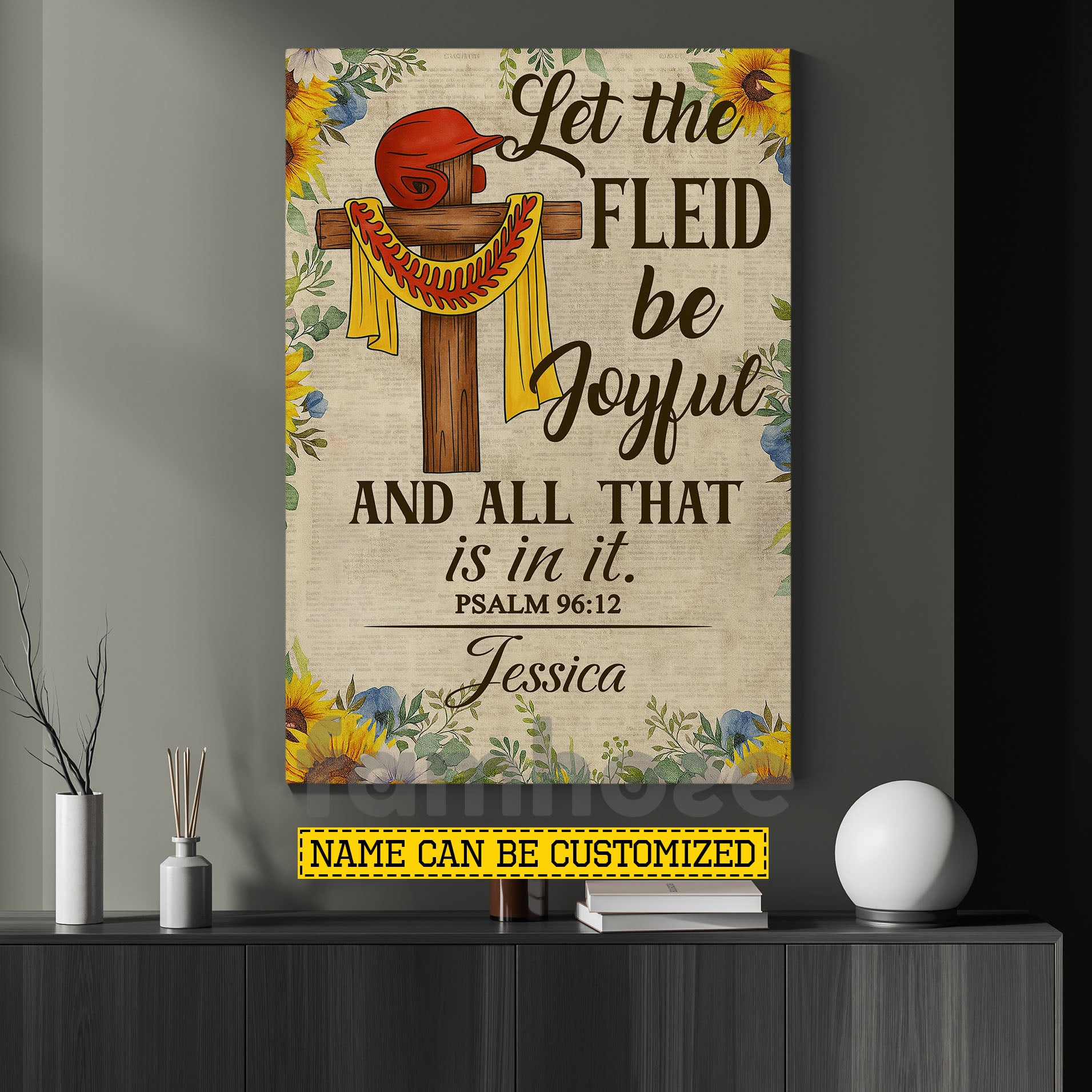 Personalized Softball Canvas Painting, Let The Fleid Be Joyful Sport Wall Art Decor, Poster Gift For Softball Lover