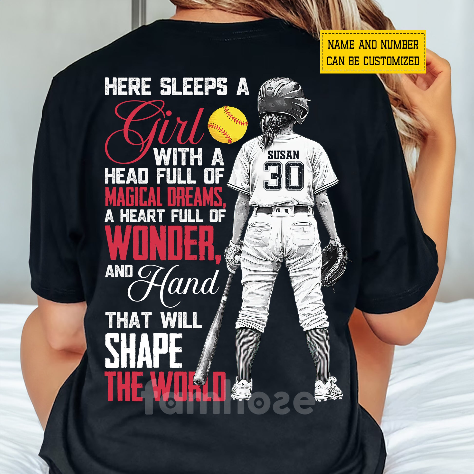 Personalized Softball Girl Backside T-shirt, Here Sleeps A Girl Tees Gift For Golf Lover