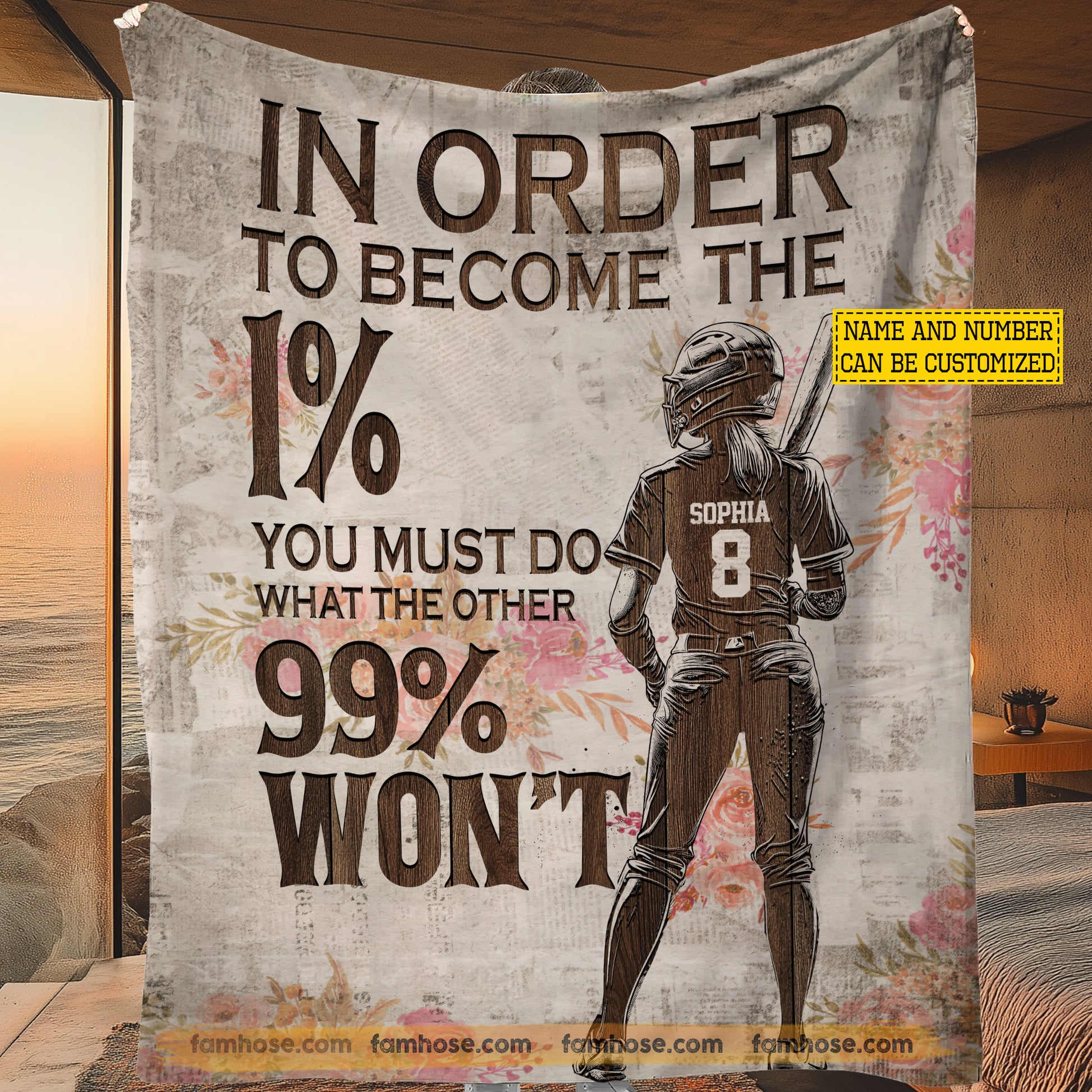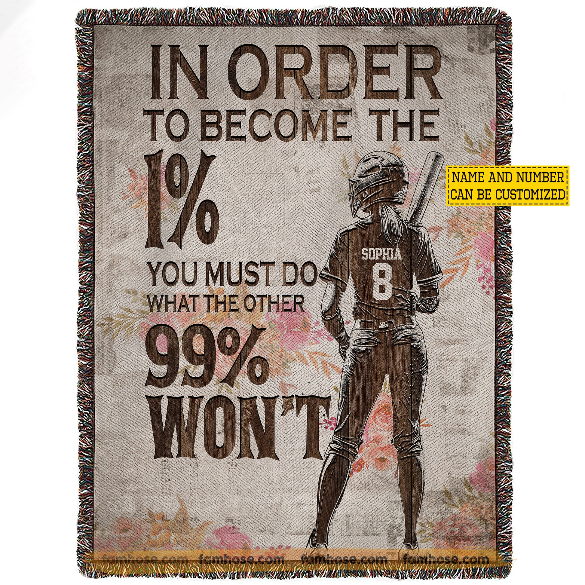 Personalized Softball Girl Fleece Blanket, In Order To Become The 1% Sport Woven Blanket, Sherpa Blanket Gift For Softball Lovers
