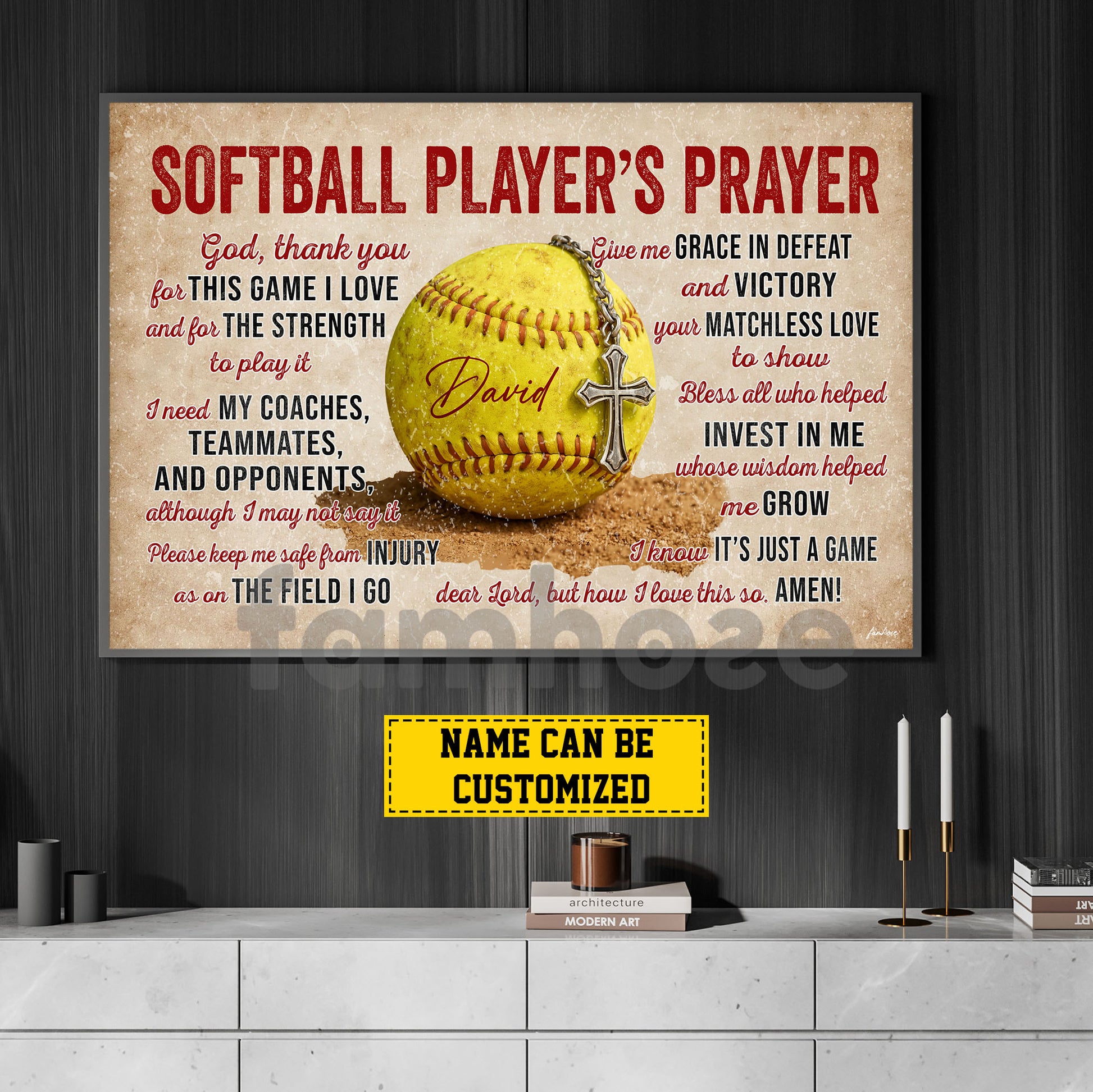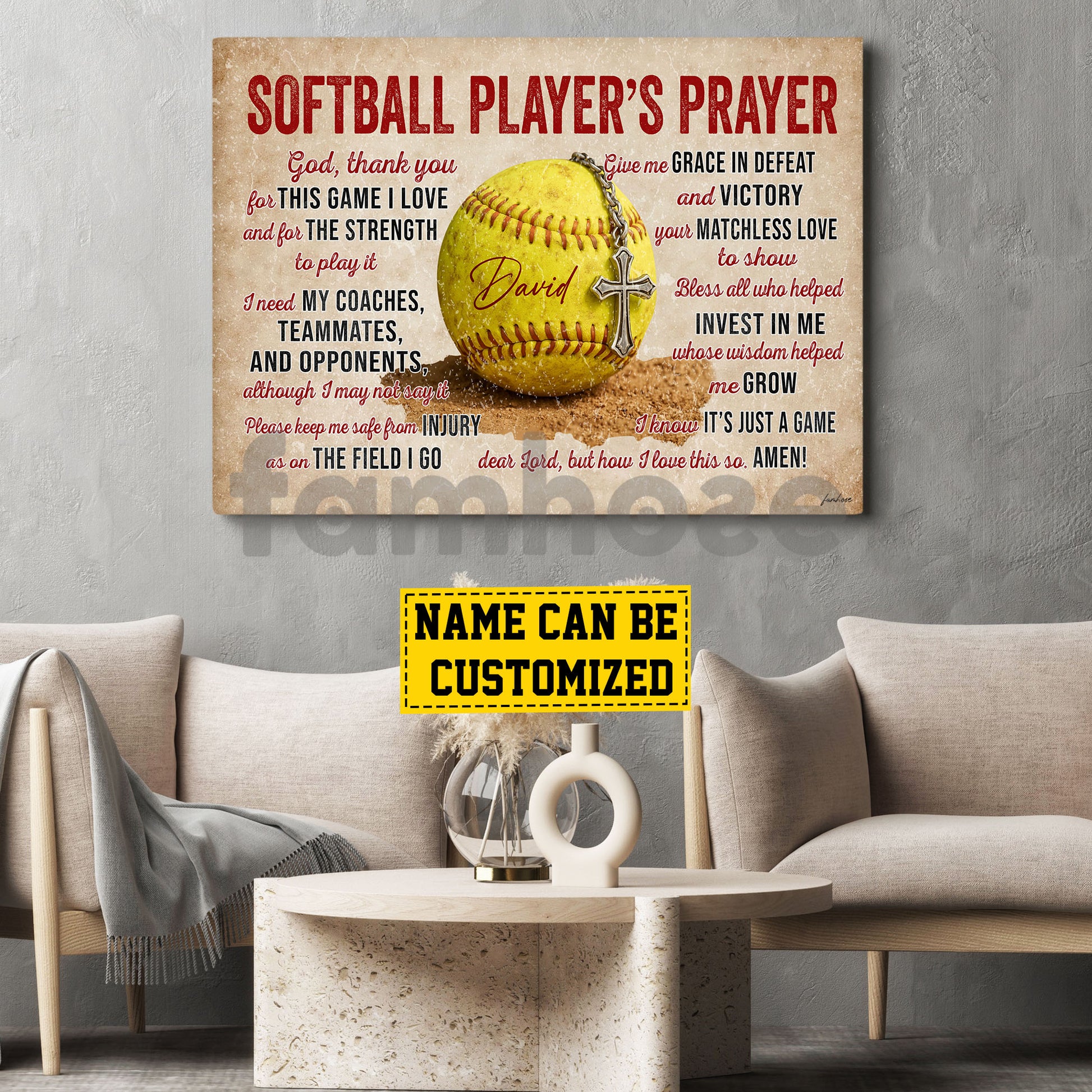 Personalized Softball God Canvas Painting, Softball Player's Prayer Sport Wall Art Decor, Poster Gift For Softball Lovers, God Lovers