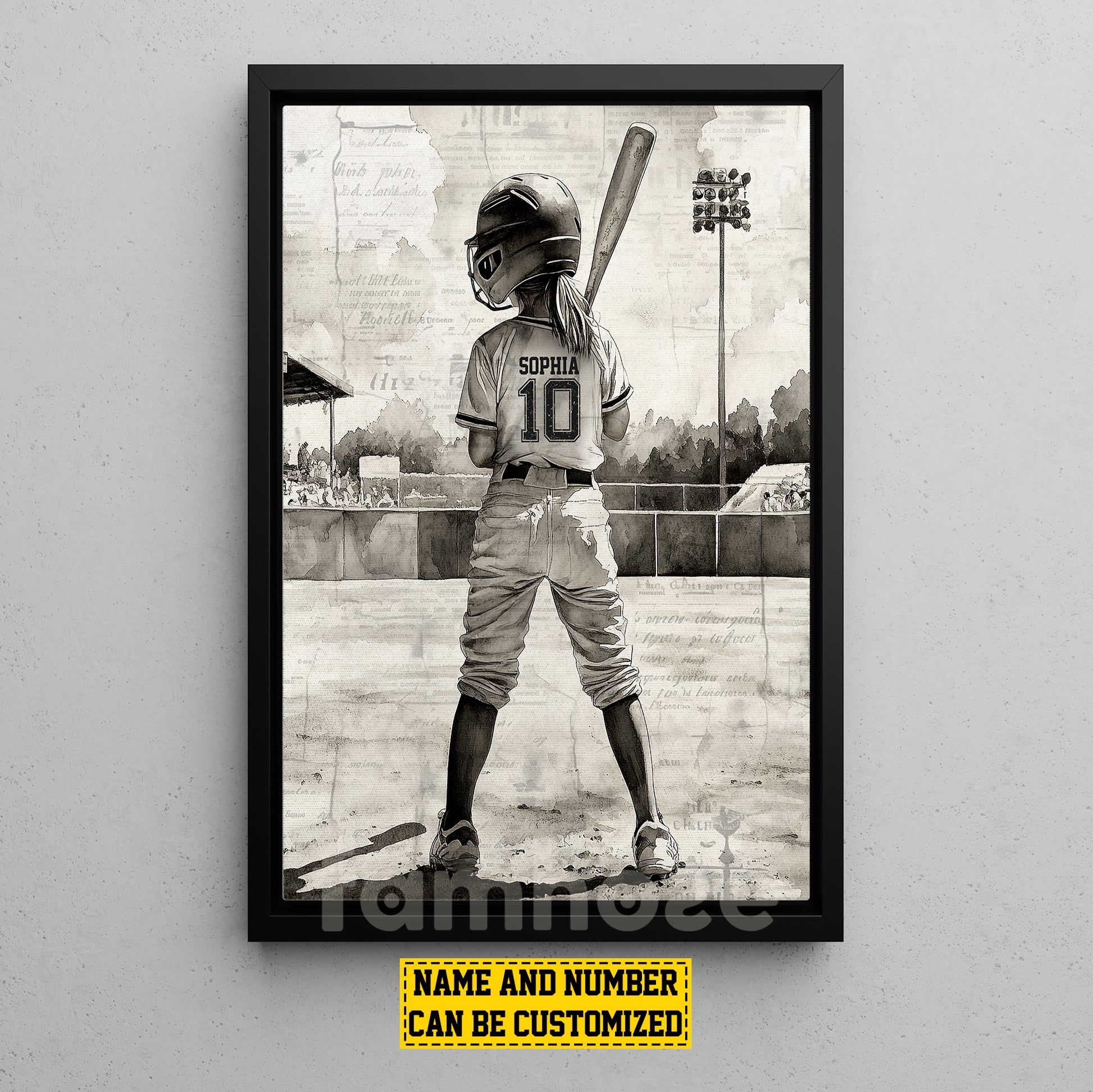 Personalized Softball Kid Girl Canvas Painting, Step Up To The Plate Sport Wall Art Decor, Poster Gift For Softball Lovers