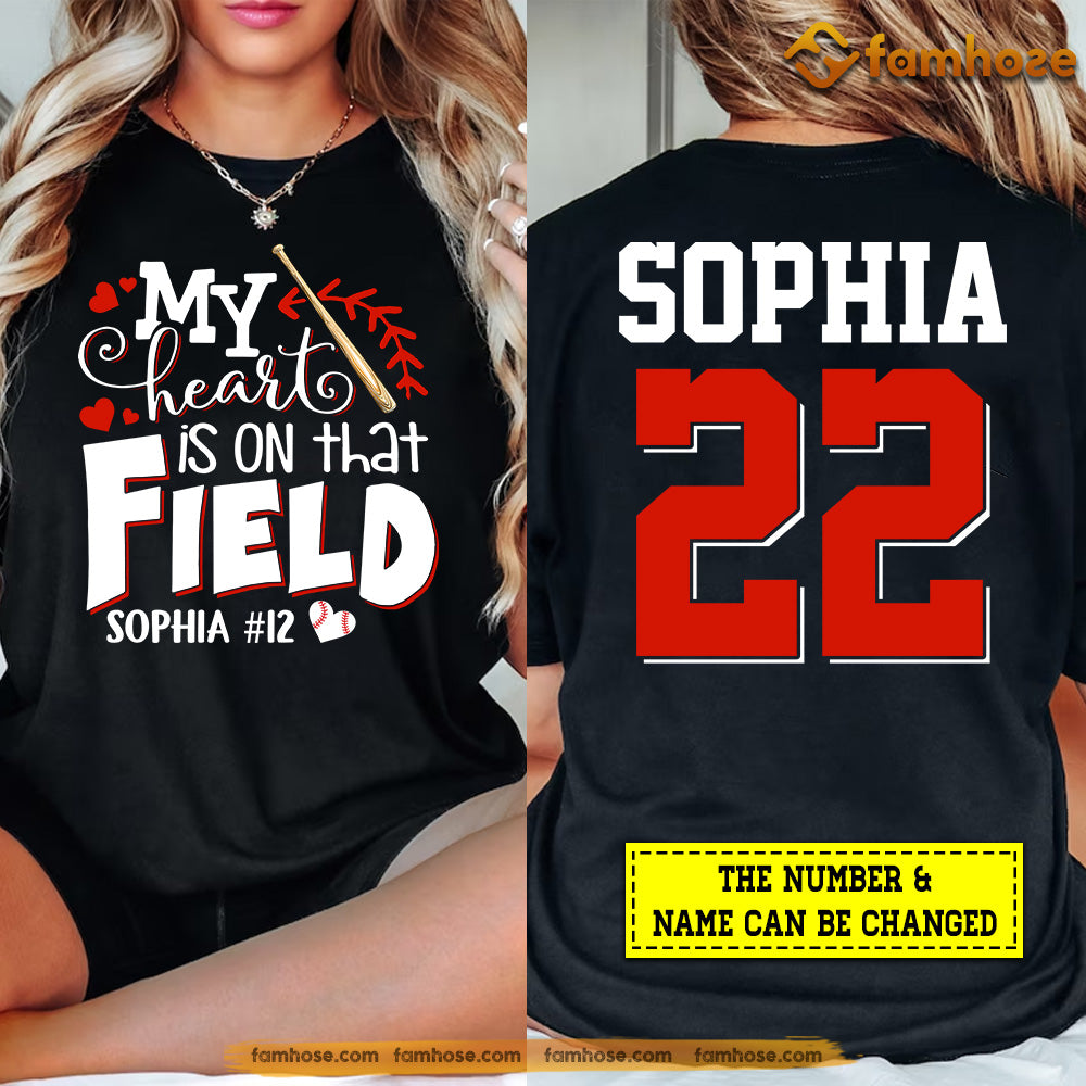 Personalized Softball T-shirt, My Heart Is On That Field Shirt Designed For Both Sides Gift For Softball Lovers, Softball Tees, Softball Girls