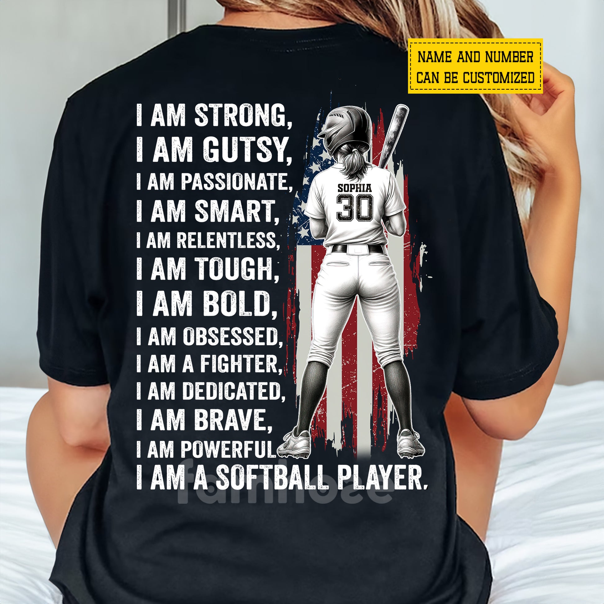 Personalized Softball Woman Backside T-shirt, I Am A Softball Player Sport Tees Gift For Softball Lover