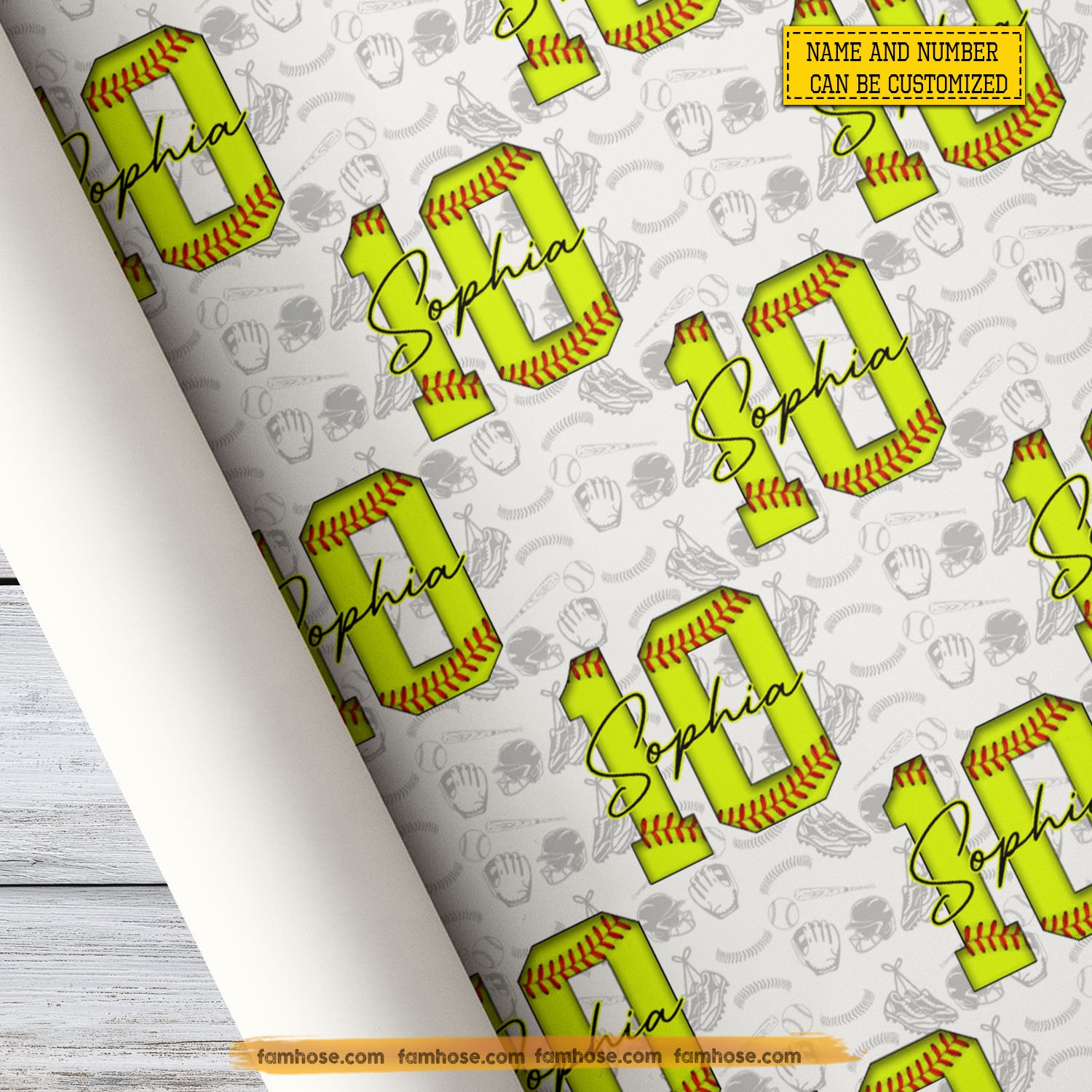 Personalized Softball Wrapping Paper, Custom Sports In White Background Wrapping Paper Rolls, Gift Wrap For Softball Lover