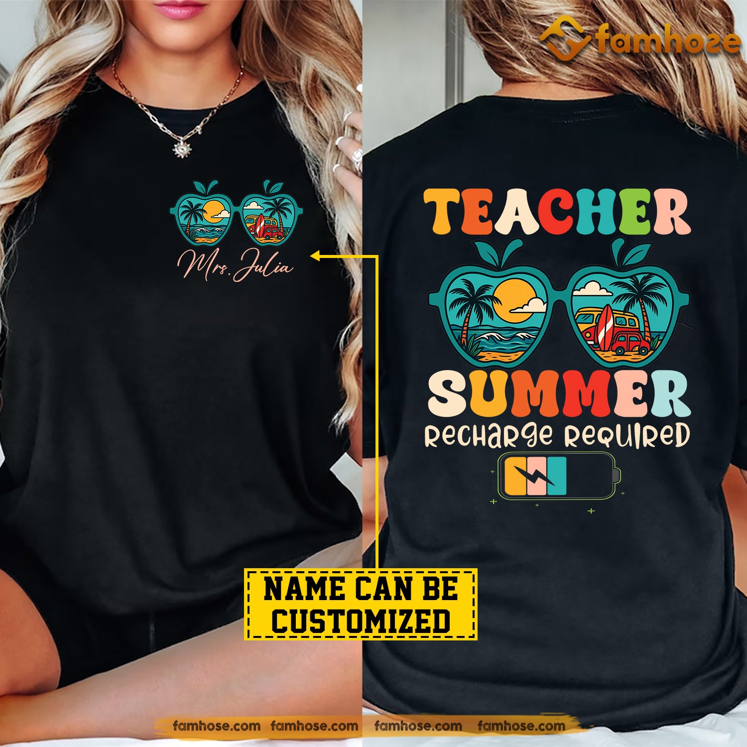 Personalized Teacher Two-sided T-shirt, Teacher Summer Recharge Required Tees Gift For Teacher Lovers