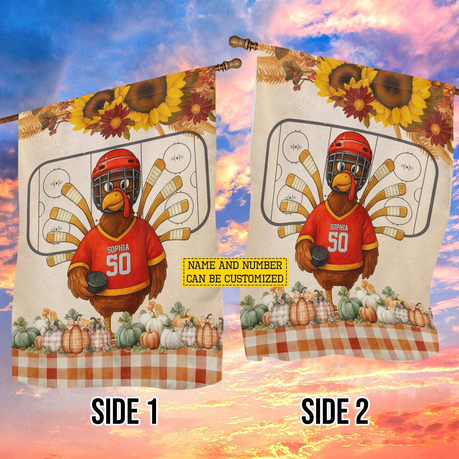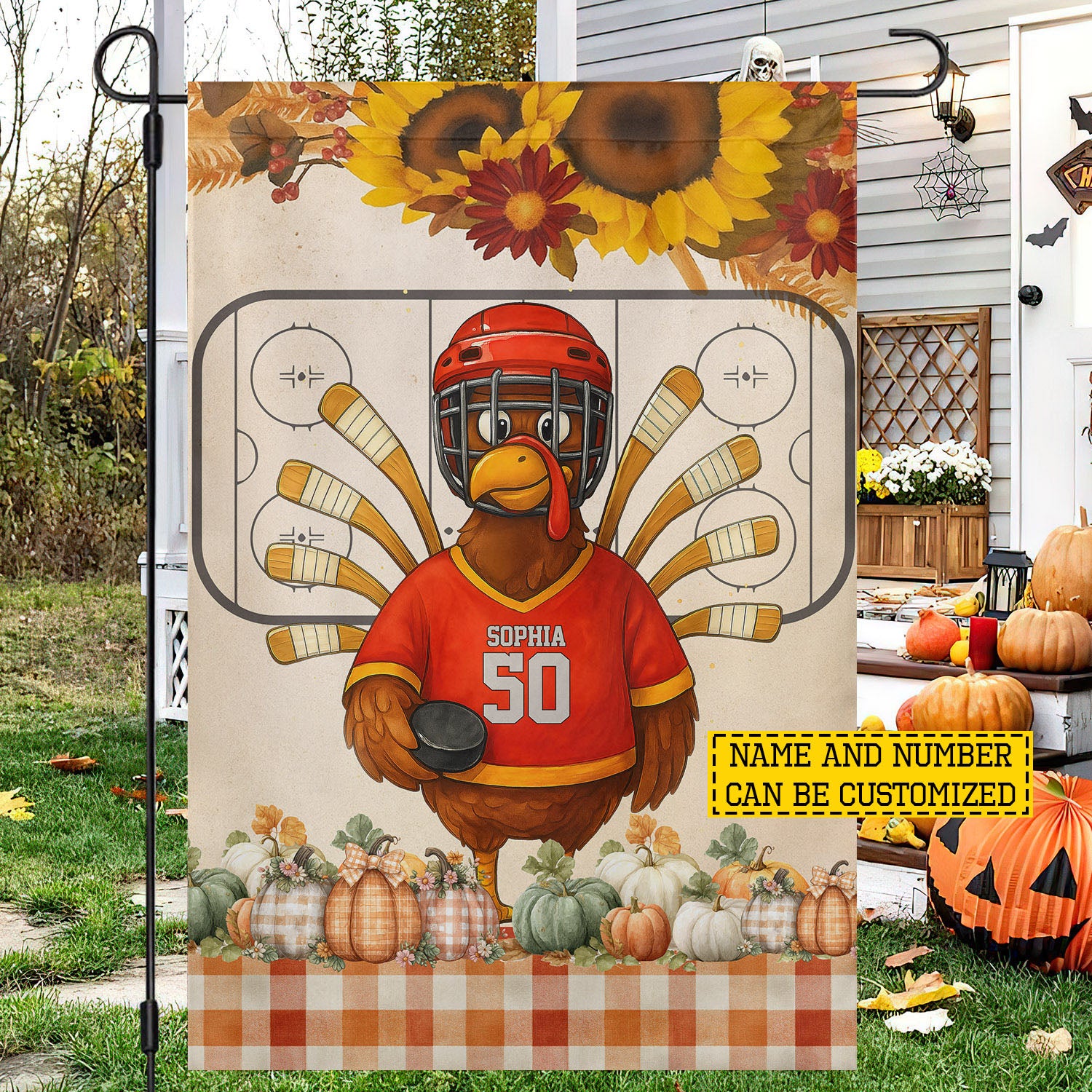 Personalized Thanksgiving Hockey Garden & House Flag, Not Your Usual Turkey Thankful Outdoor Decor, Yard Decor Gift For Hockey Lovers