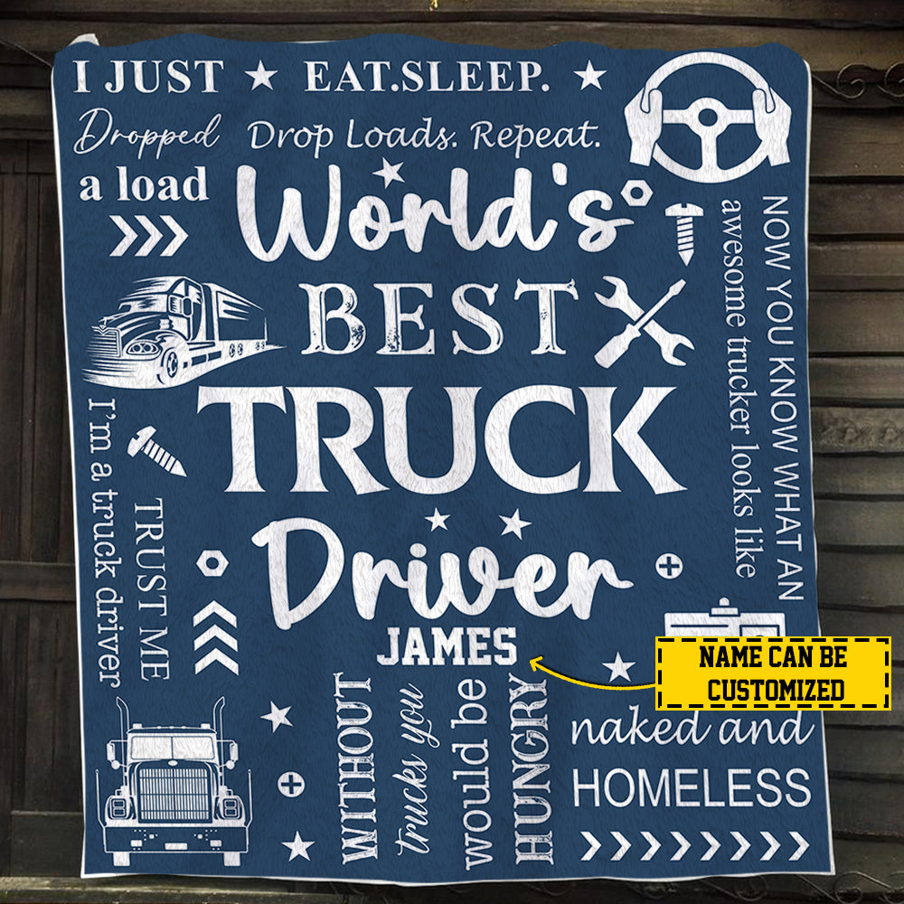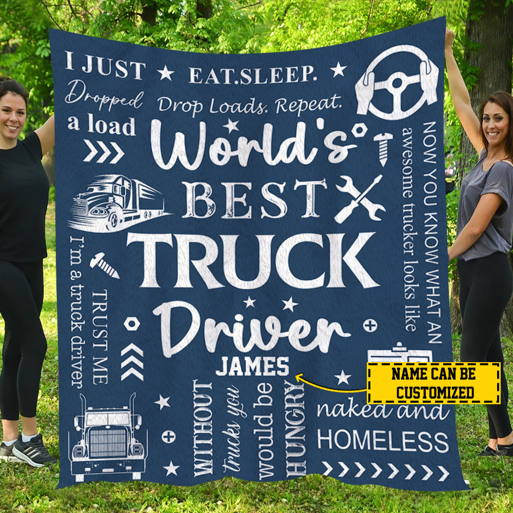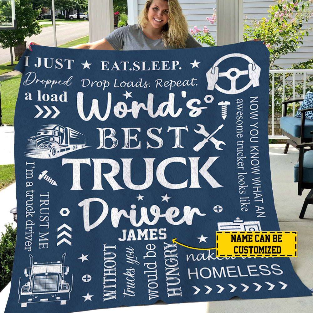 Personalized Trucker Blanket, World's Best Truck Driver, Trucker Fleece Blanket - Sherpa Blanket, Gift For Trucker Lovers