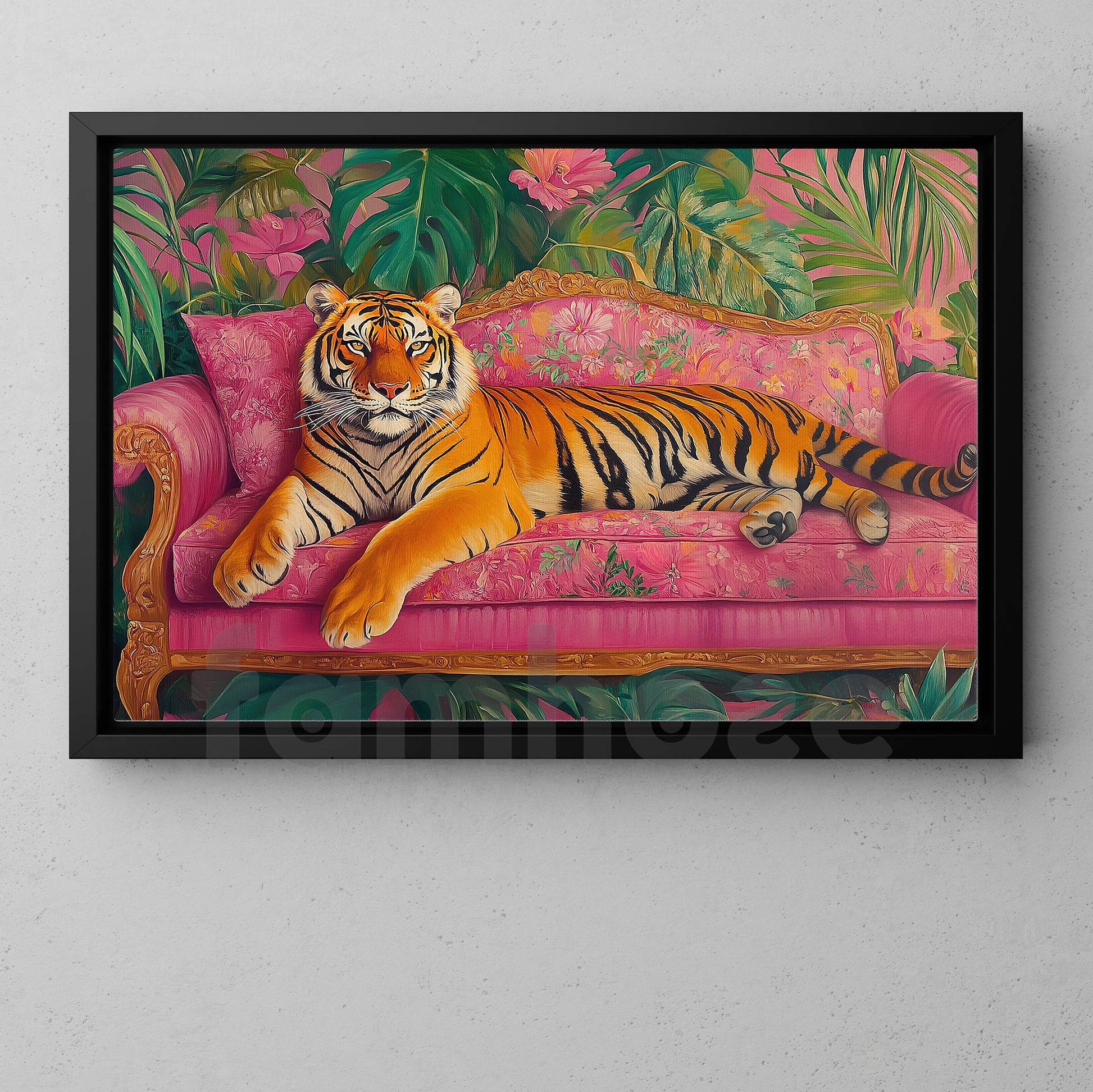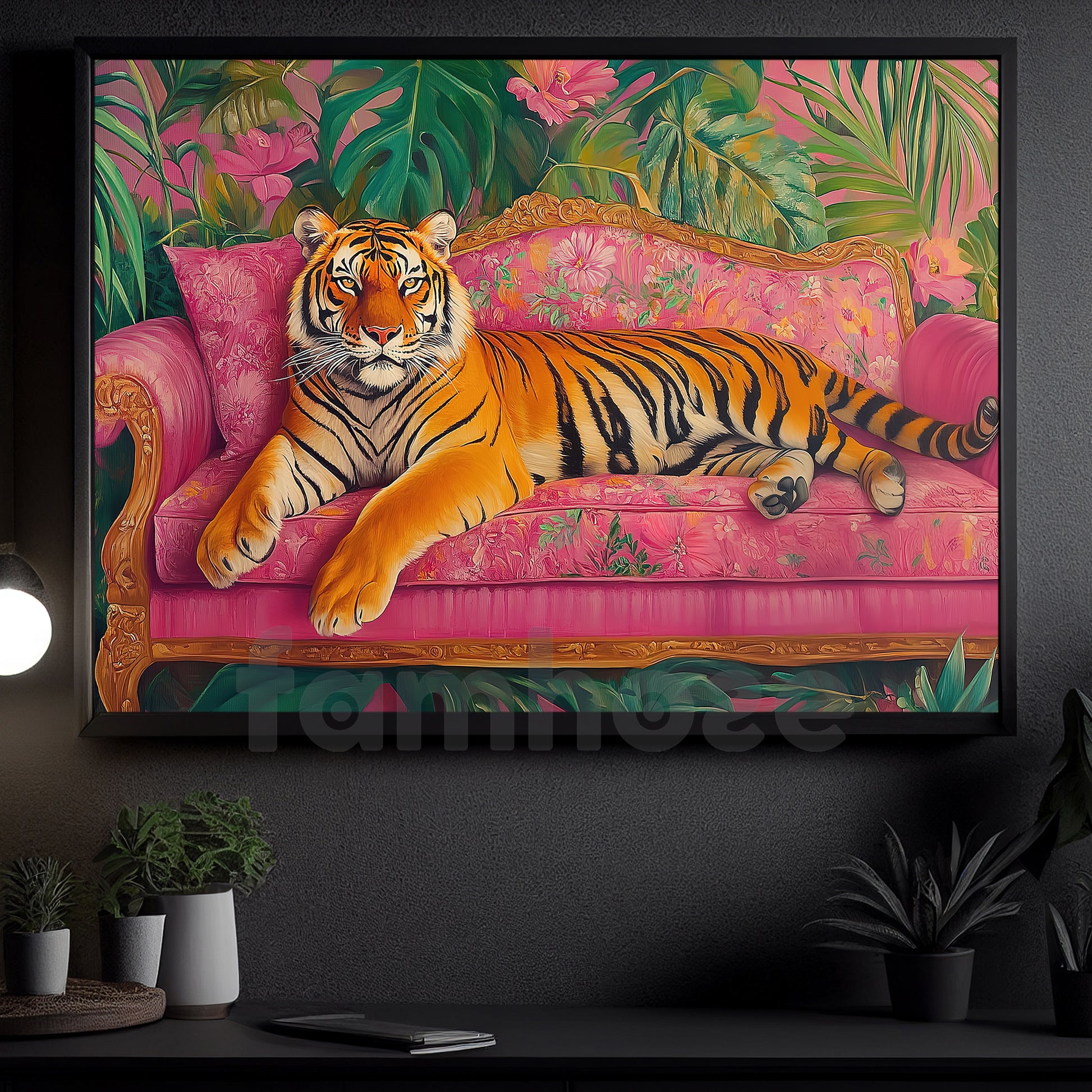 Relax Tiger Canvas Painting, Exotic Jungle King Wall Art Decor, Poster Gift For Tiger Lovers