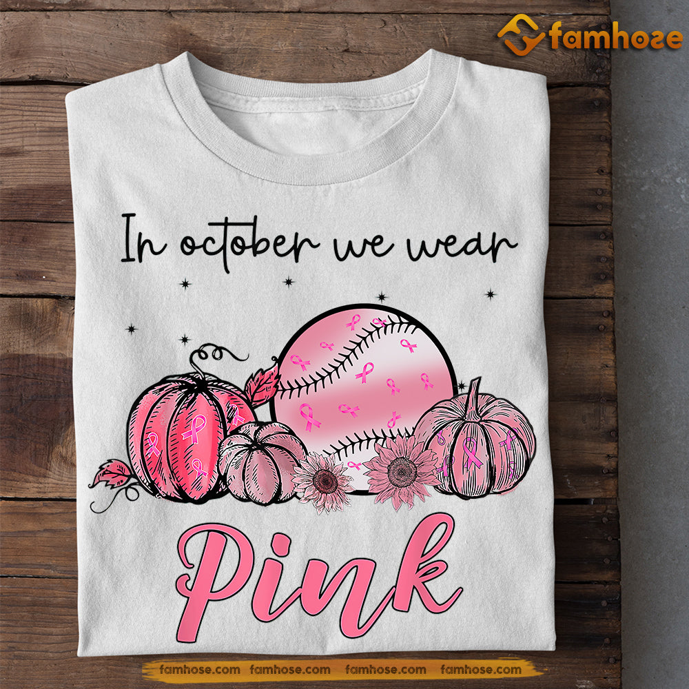 Softball T-shirt, In October We Wear Pink, Gift For Softball Lovers Who Support Breast Cancer Awareness