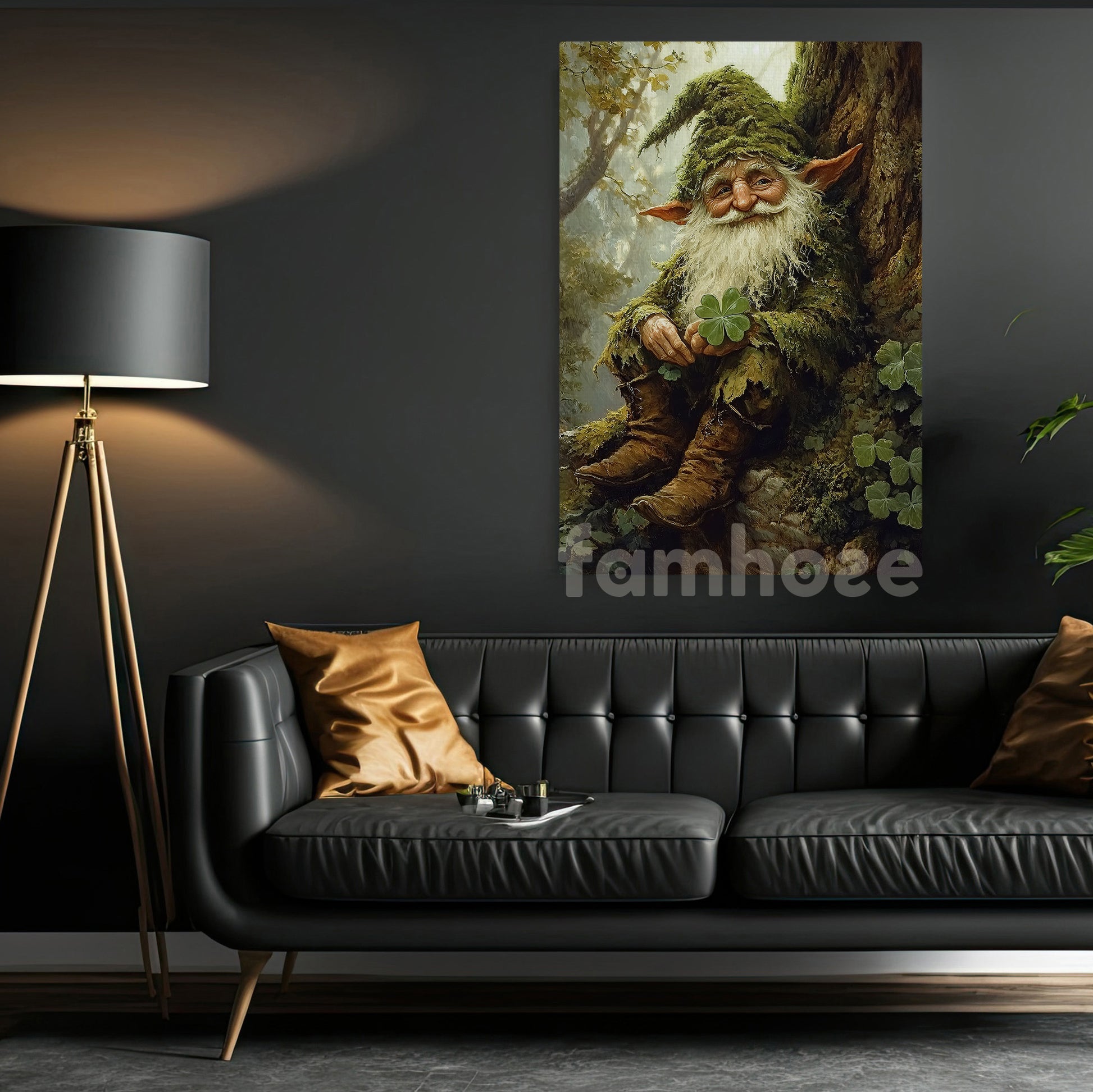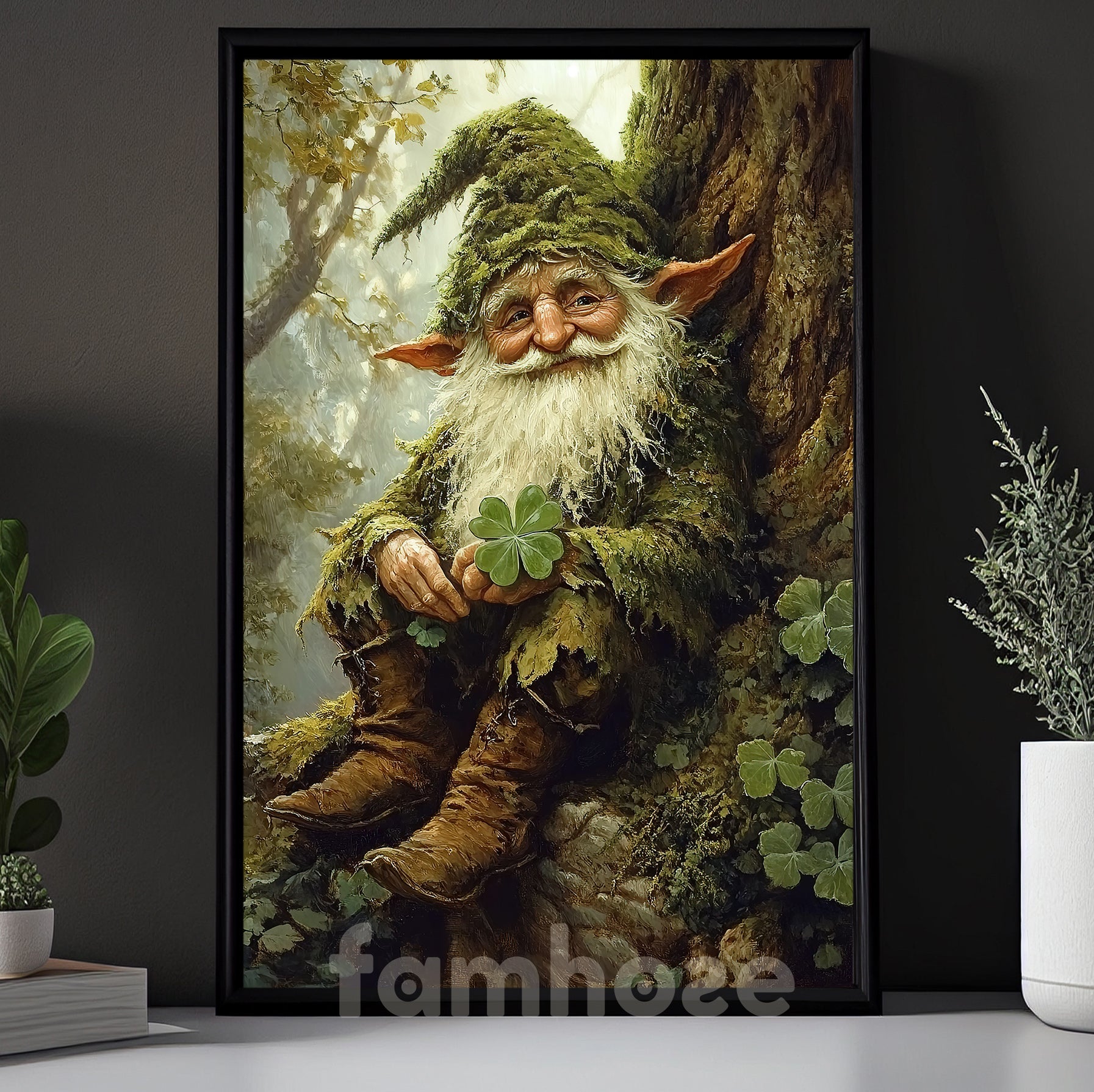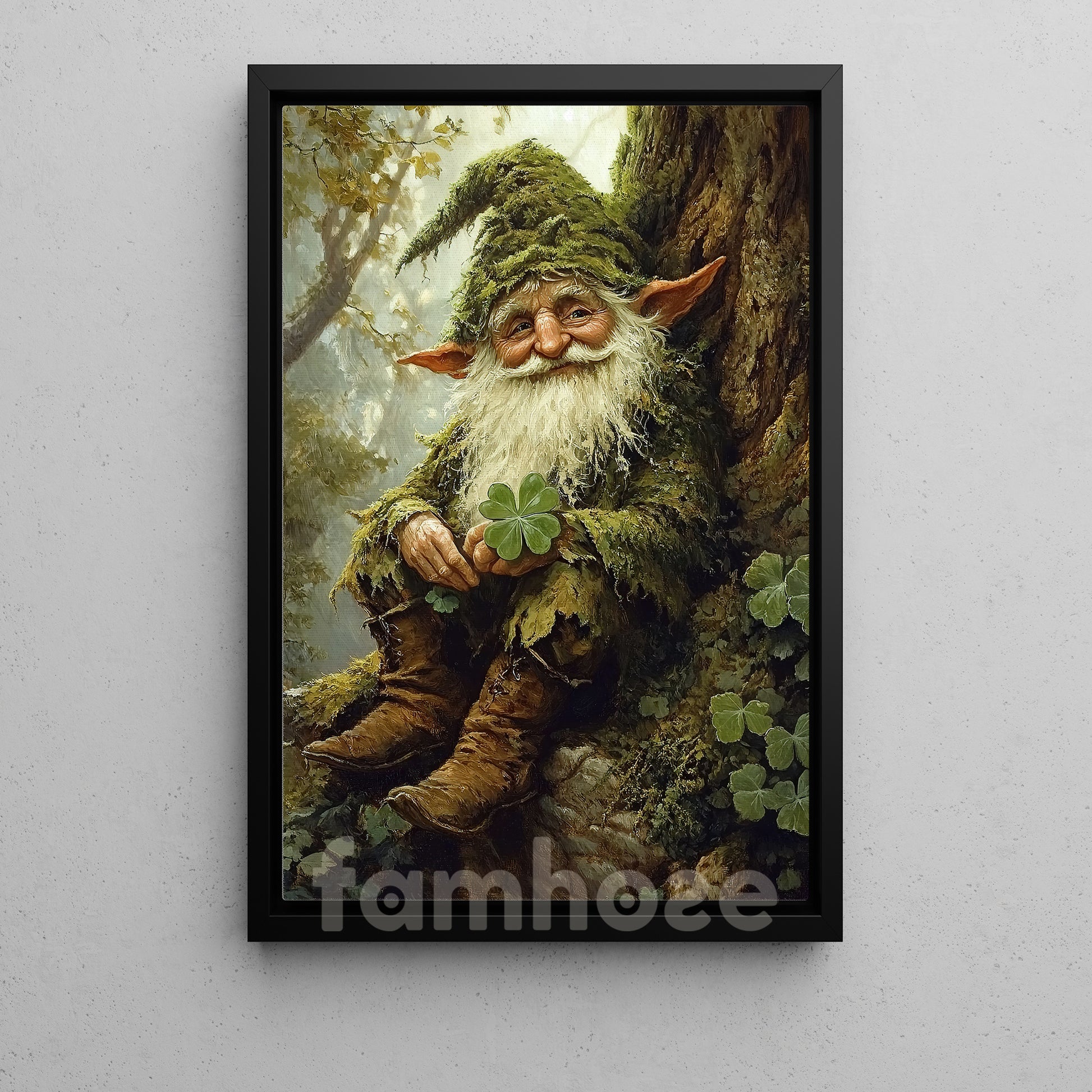 St Patrick's Day Canvas Painting, Whimsical Forest Gnome With Shamrocks Wall Art Decor, Irish Poster Gift