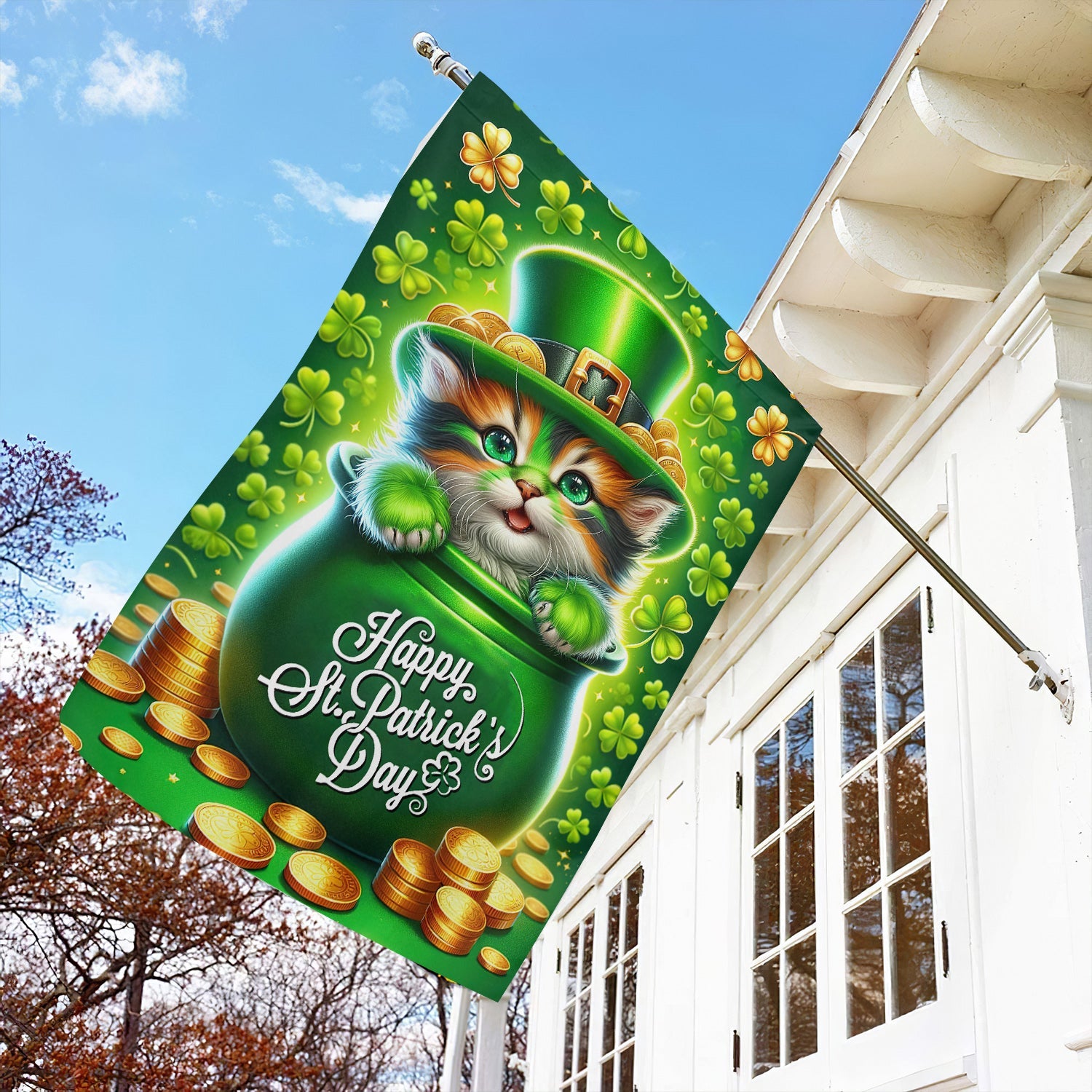 St Patrick's Day Cat Flag, Cat Inside The Money Jar, St Patrick's Day Cat Garden Flag & House Flag Gift, St Patricks Day Irish Outdoor Decoration Gift For Cat Lovers