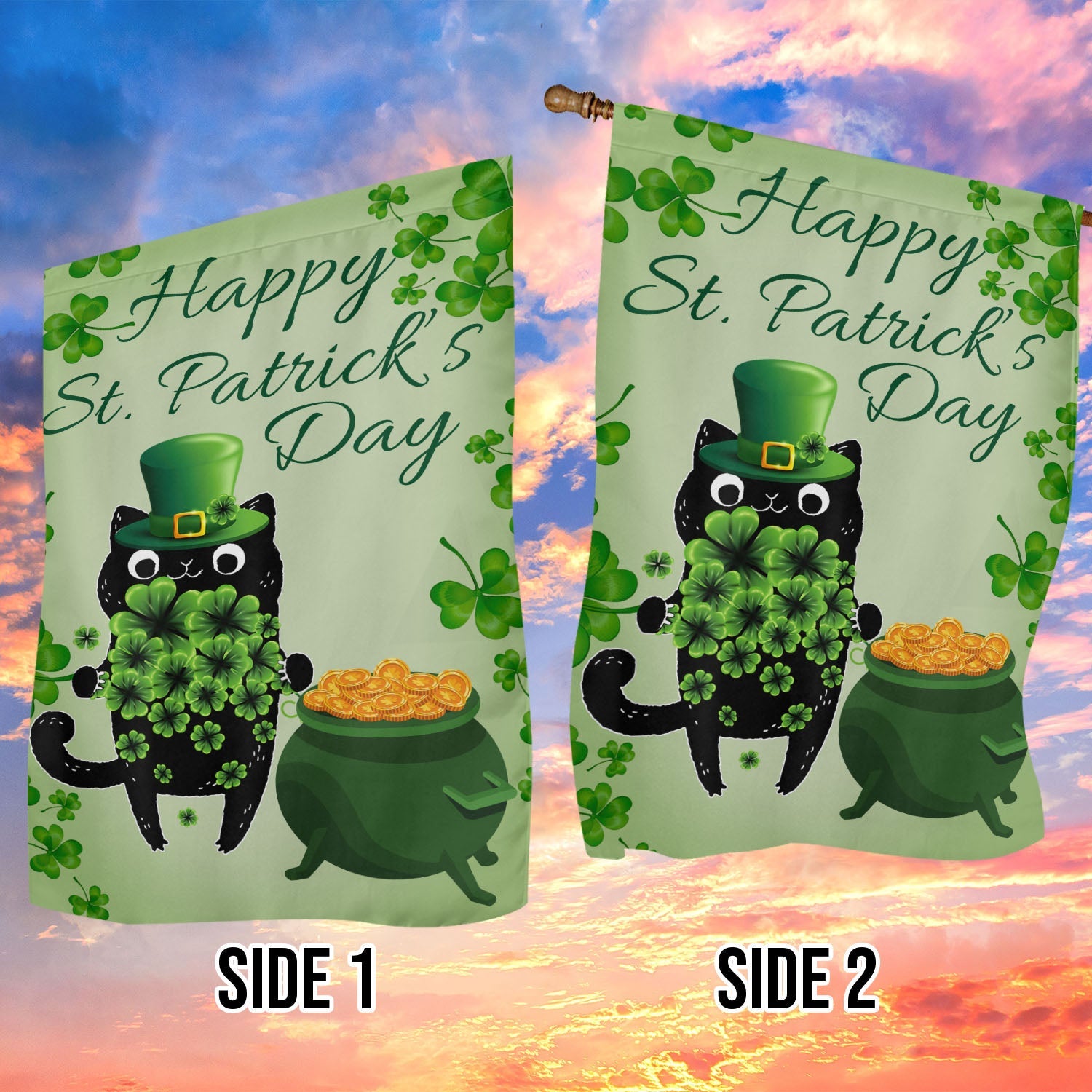 St Patrick's Day Cat Flag, Hold The Clovers, St Patrick's Day Cat Garden Flag & House Flag Gift, St Patricks Day Irish Outdoor Decoration Gift For Cat Lovers