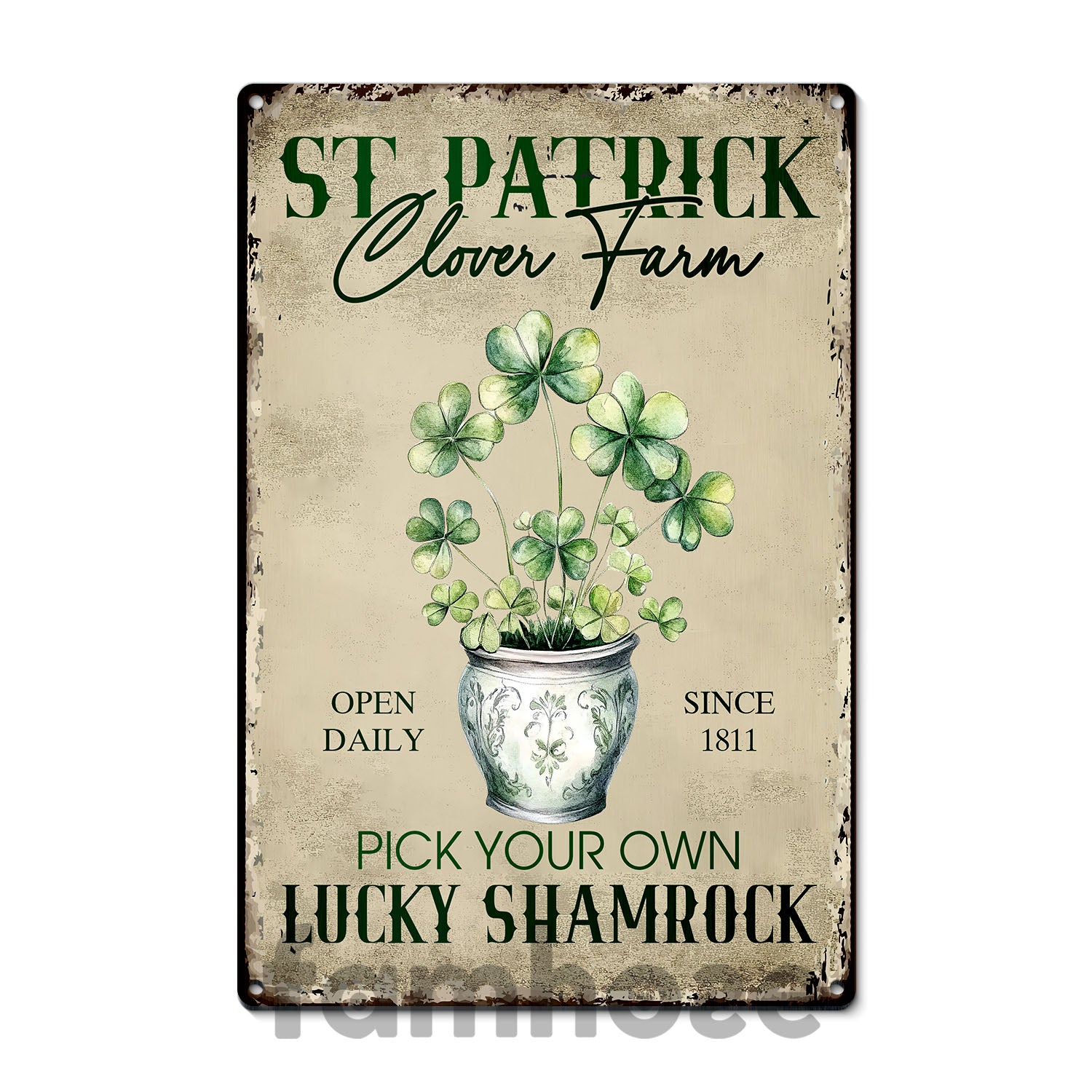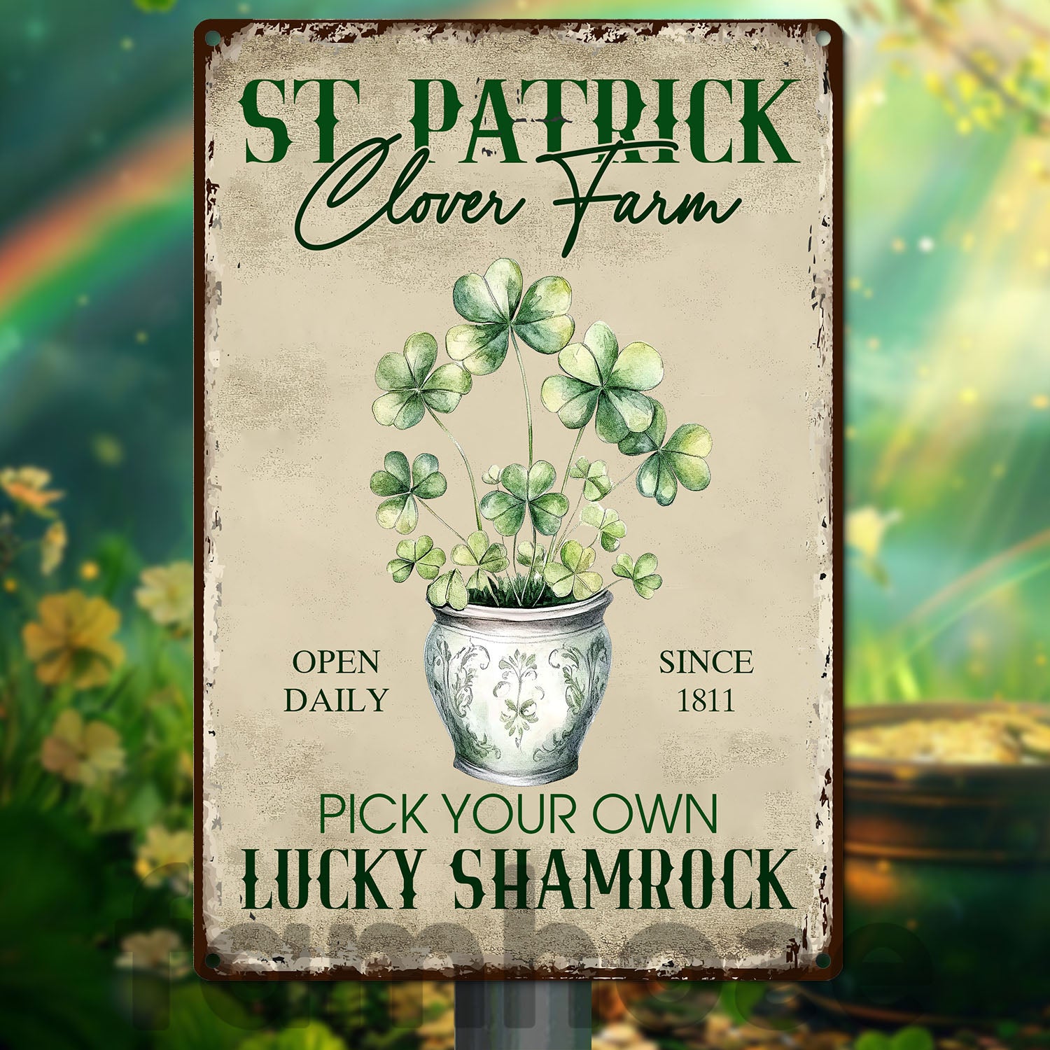 St Patrick's Day Metal Sign, Pick Your Own Lucky Shamrock, Welcome To The Magical Garden Backyard Sign