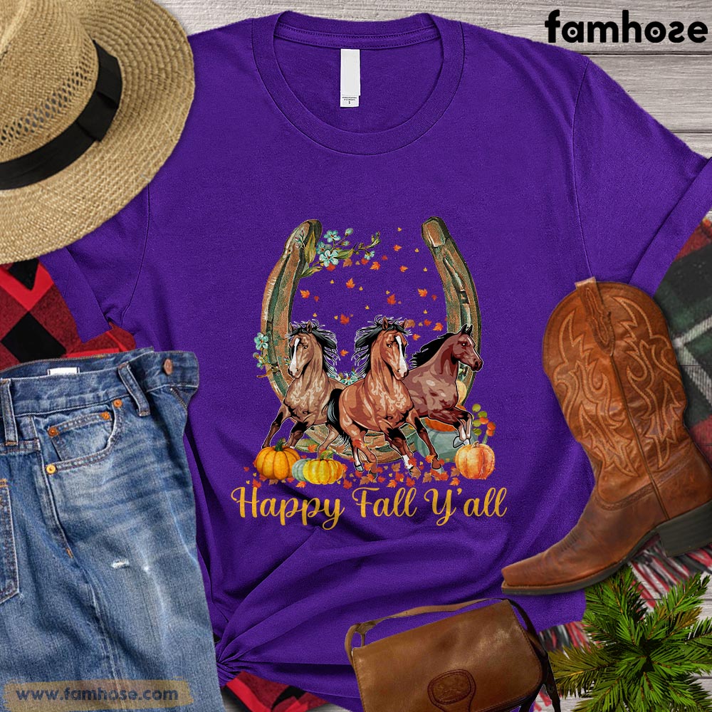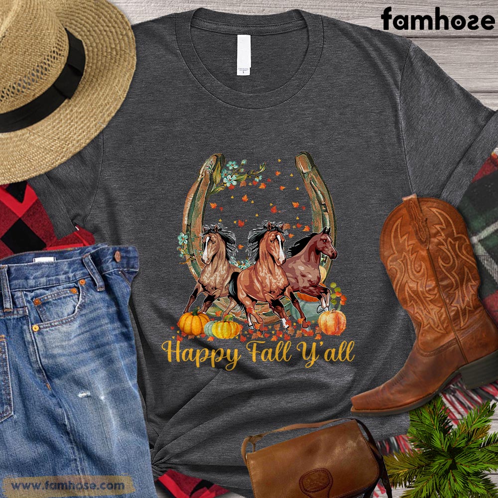 Thanksgiving Horse T-shirt, Happy Fall Yall Horseshoe Pumpkin Thanksgiving Gift For Horse Lovers, Horse Riders, Equestrians